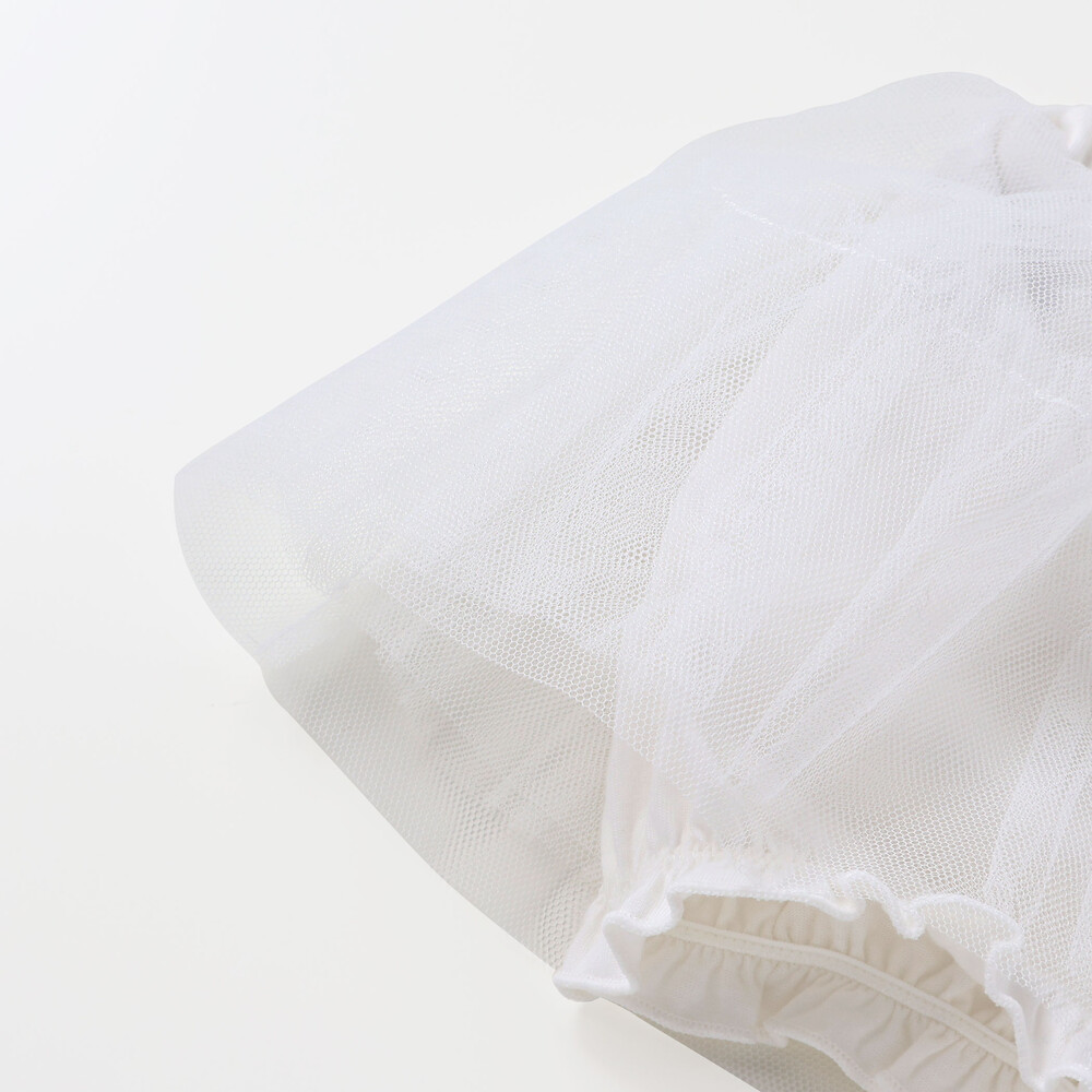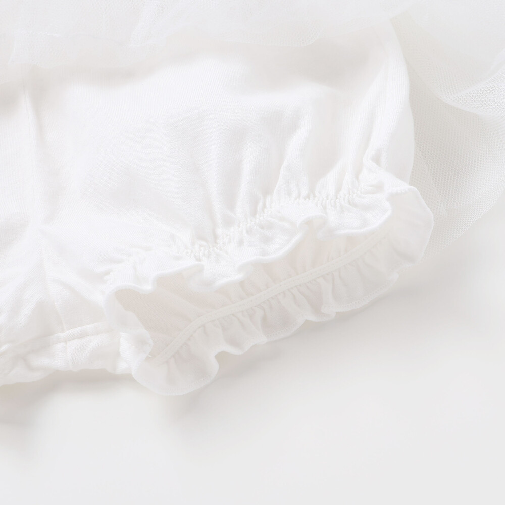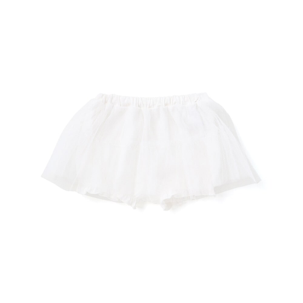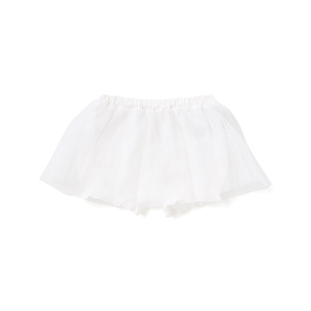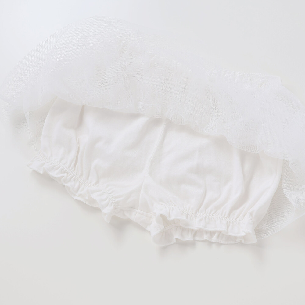 お祝い事にもぴったり!ふんわりギャザーの女の子用チュールのスカート付ブルマ。