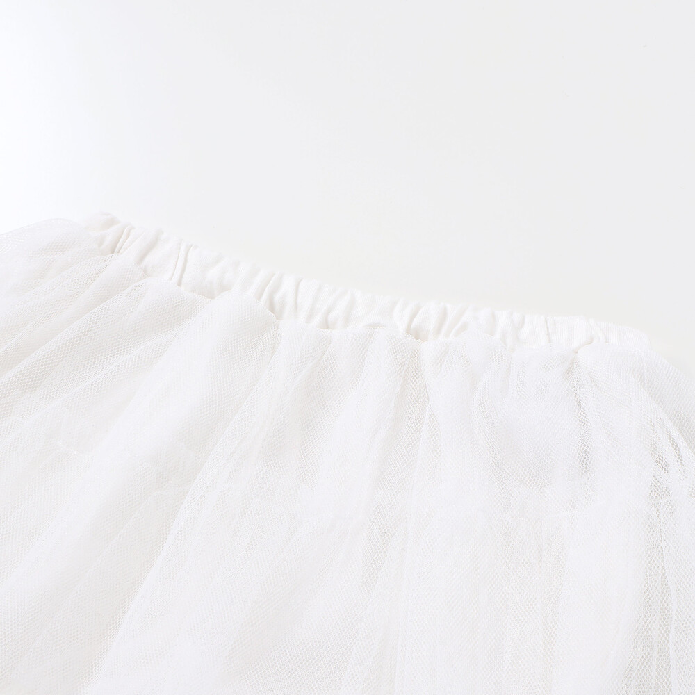 スカートの上下には、軽やかで表情豊かなチュール素材を使用。