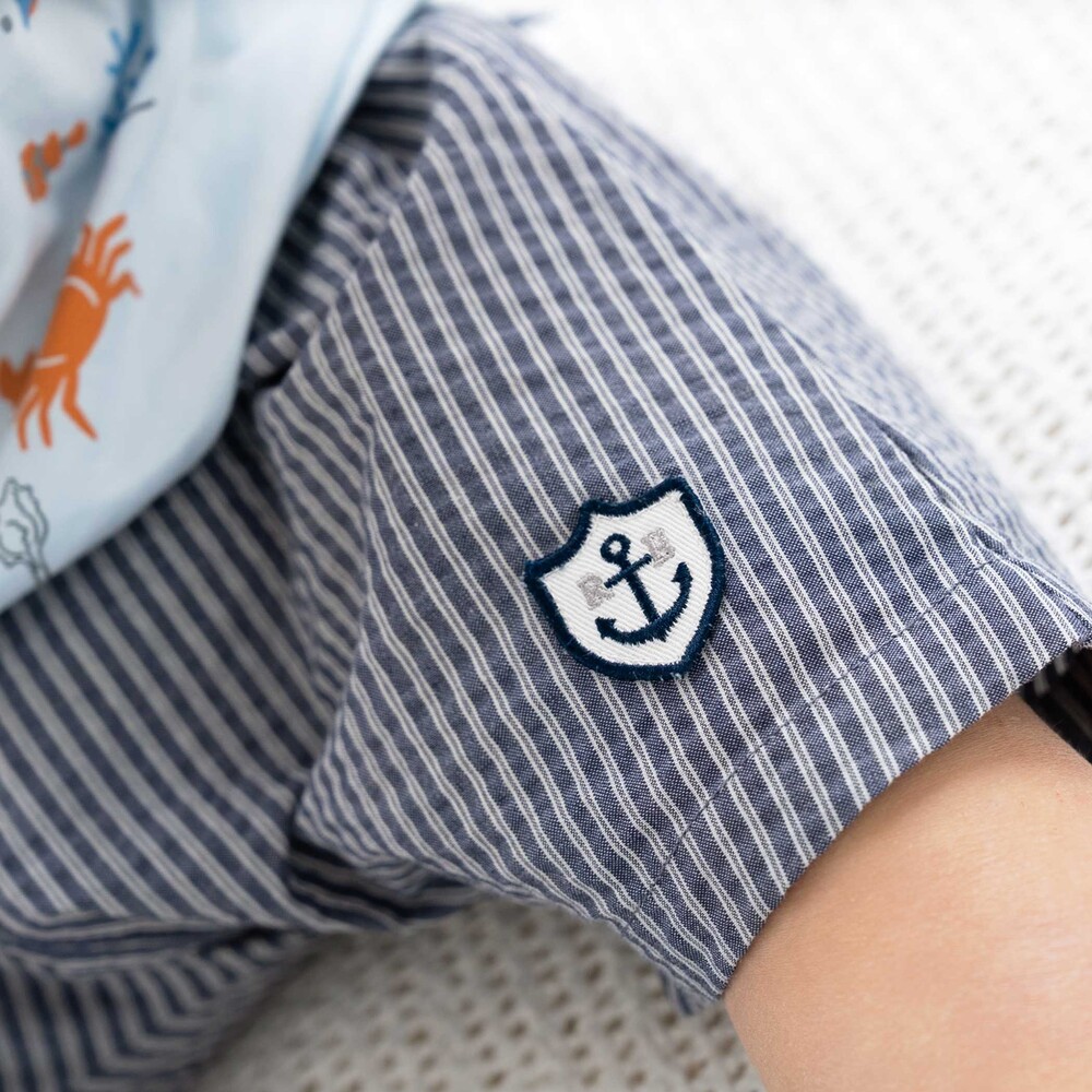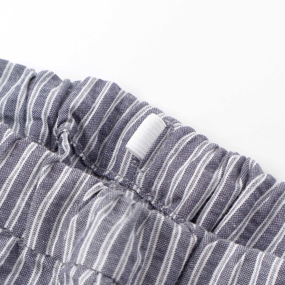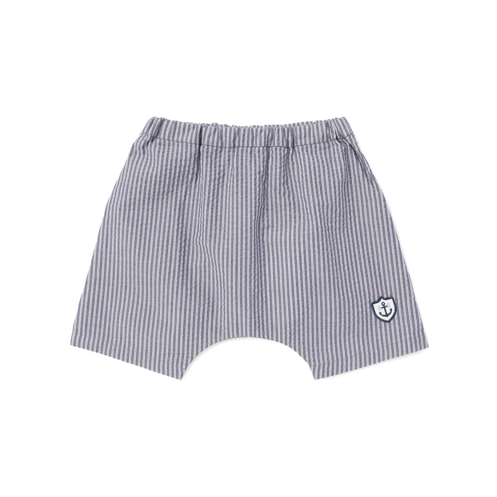 爽やかなネイビーのストライプが映える、マリンテイストな男の子ベビー用ショートパンツです。