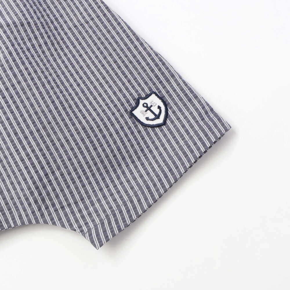 左裾には、ツイル素材を使用したホワイトのシールド型ワッペンを配し、マリンスタイルのアクセントを添えました。