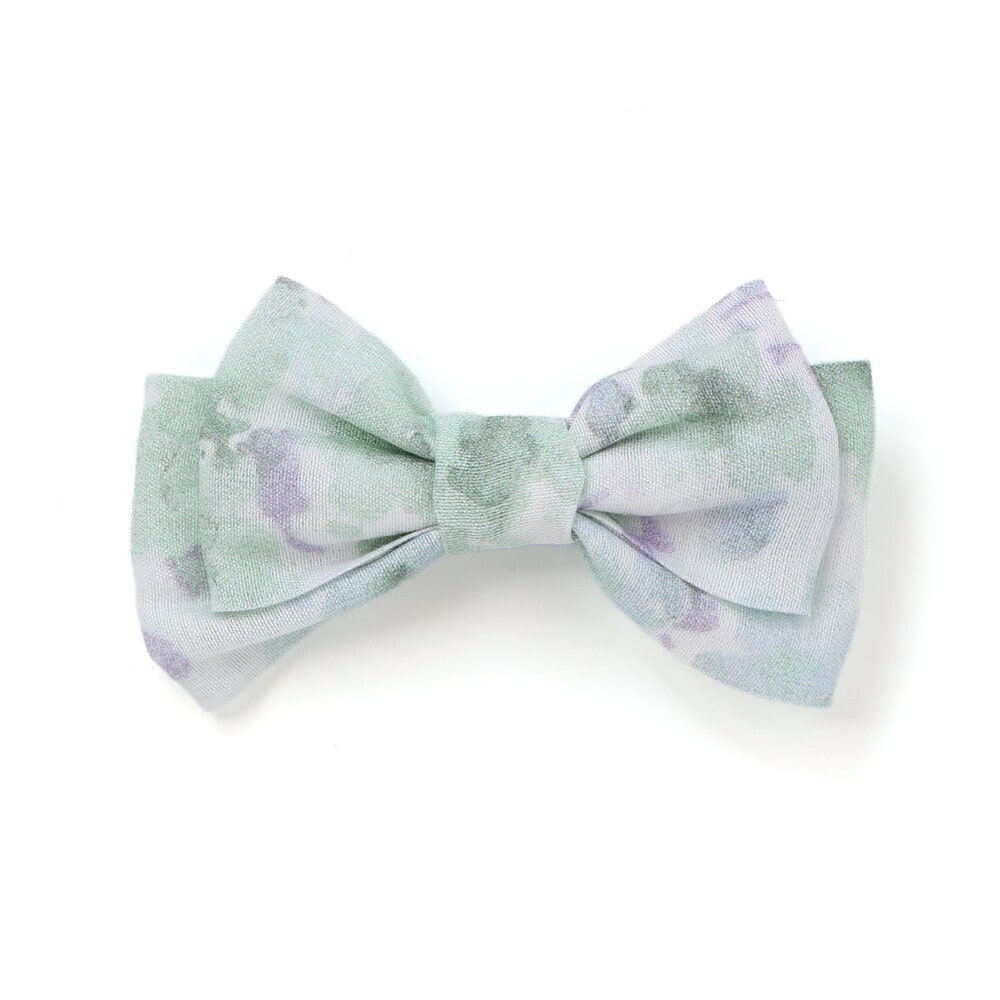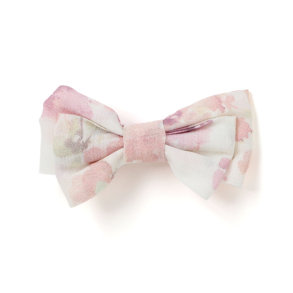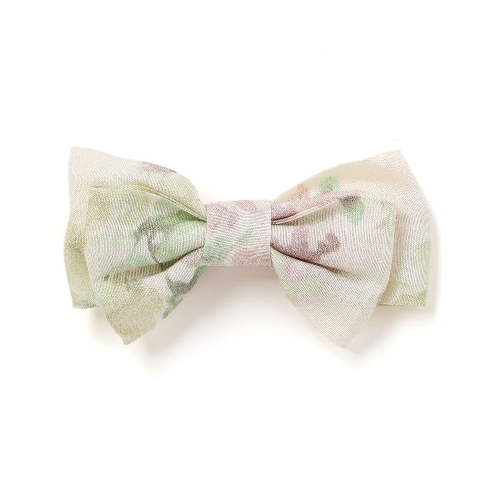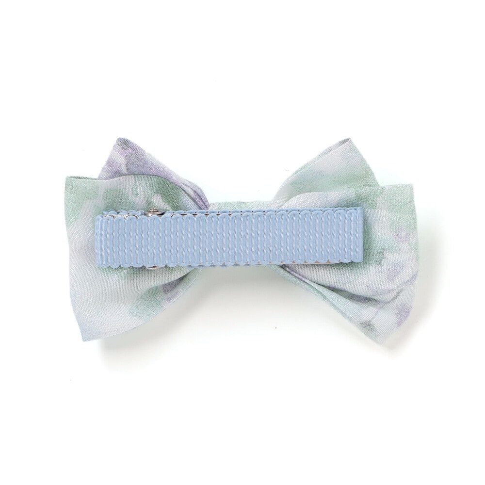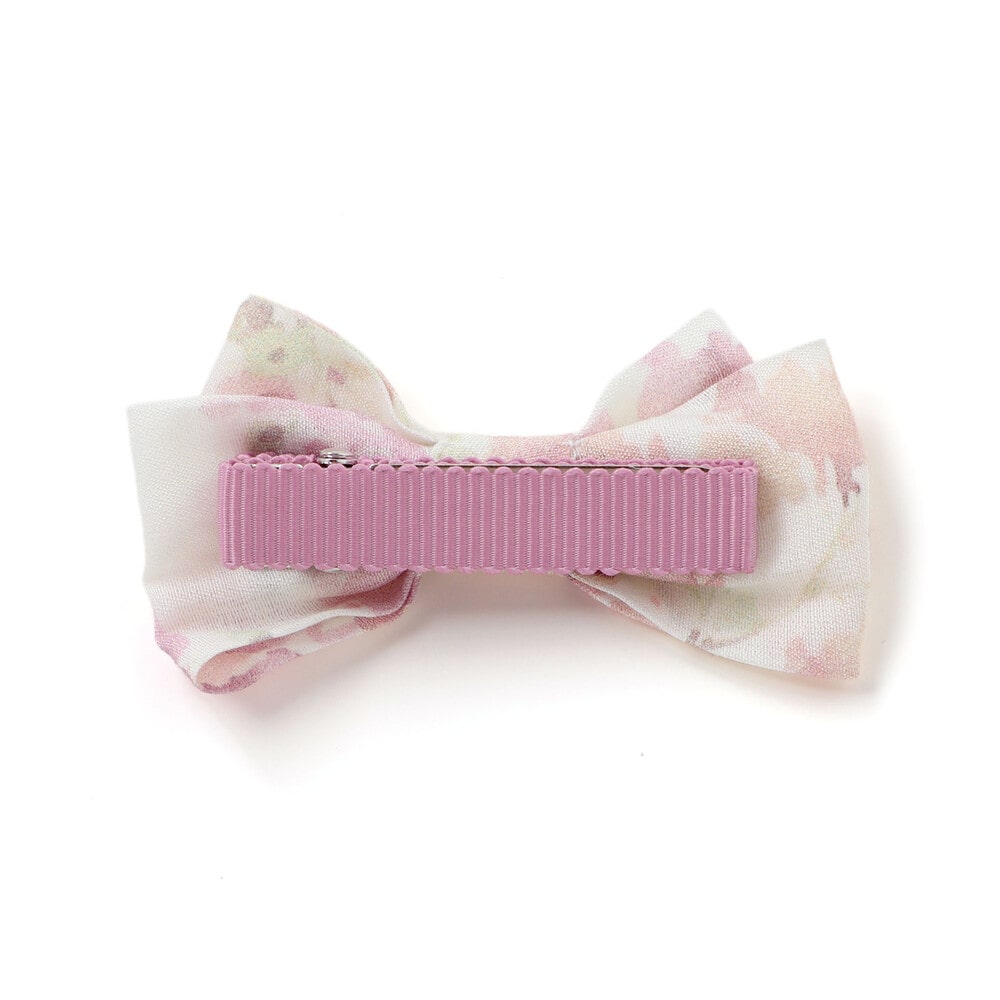 シフォンの生地に花プリントが可愛いリボンの形の女の子用ヘアークリップです。