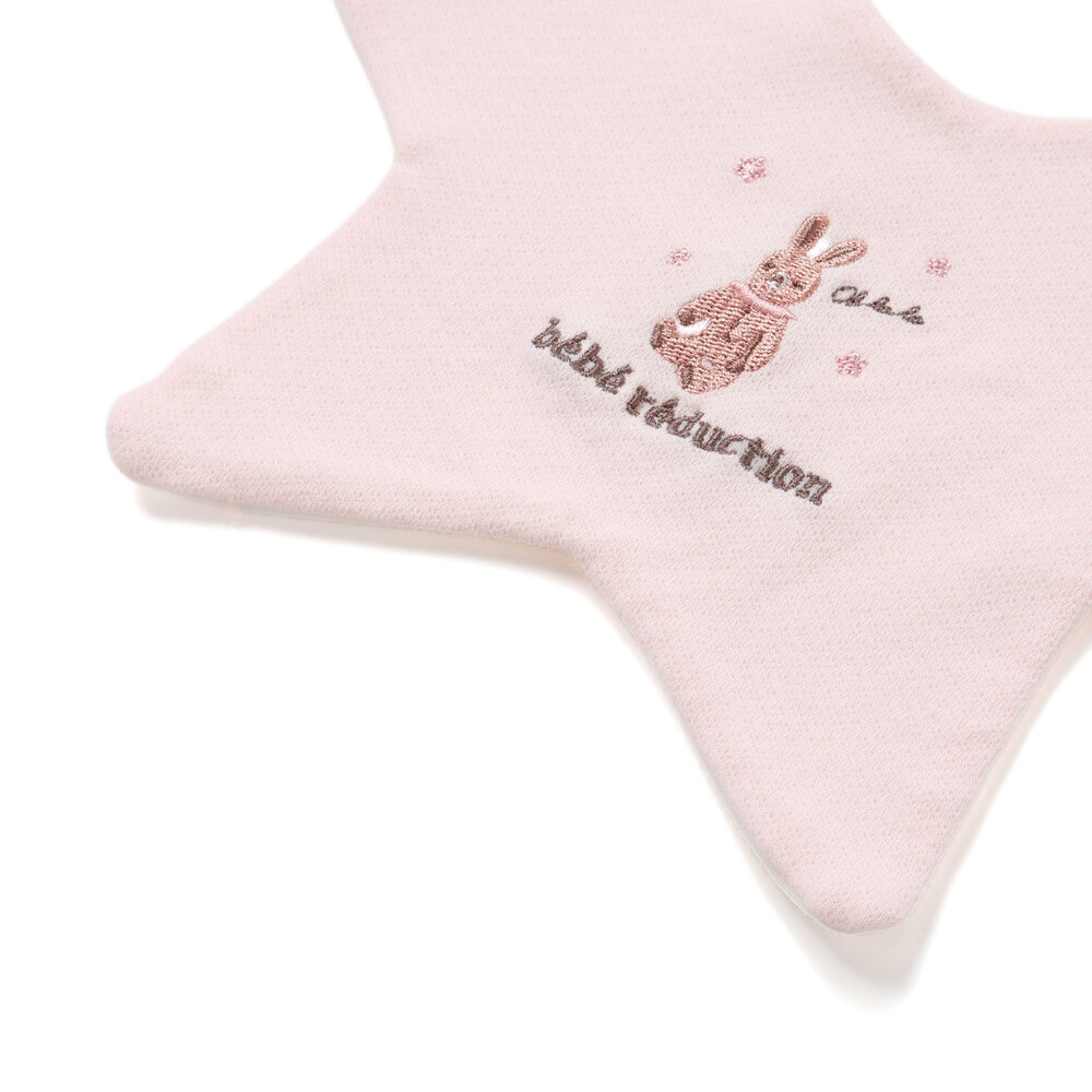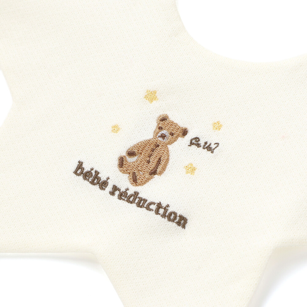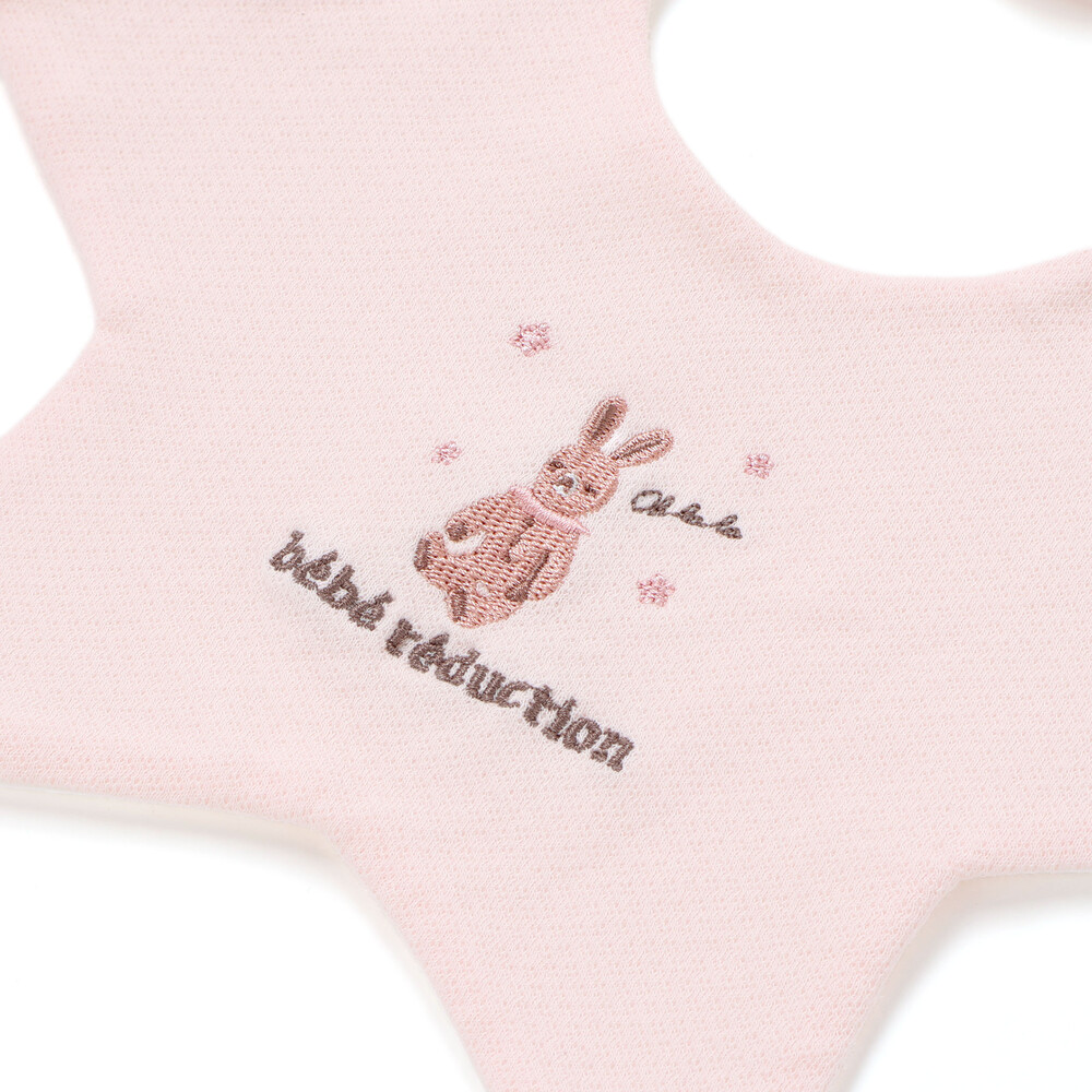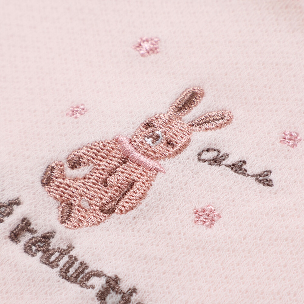 アイボリー(オフホワイト)には、ブランドの人気者クマの「ルウちゃん」、ピンクにはウサギの「ティオンちゃん」の刺しゅうが入っています。
