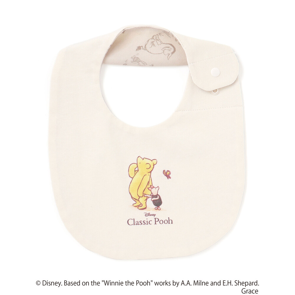 スタイの前面には、【クラシックプー】のキャラクターたち([プーさん]、[ピグレット])などが描かれた、愛らしく心温まるプリントが施されています。