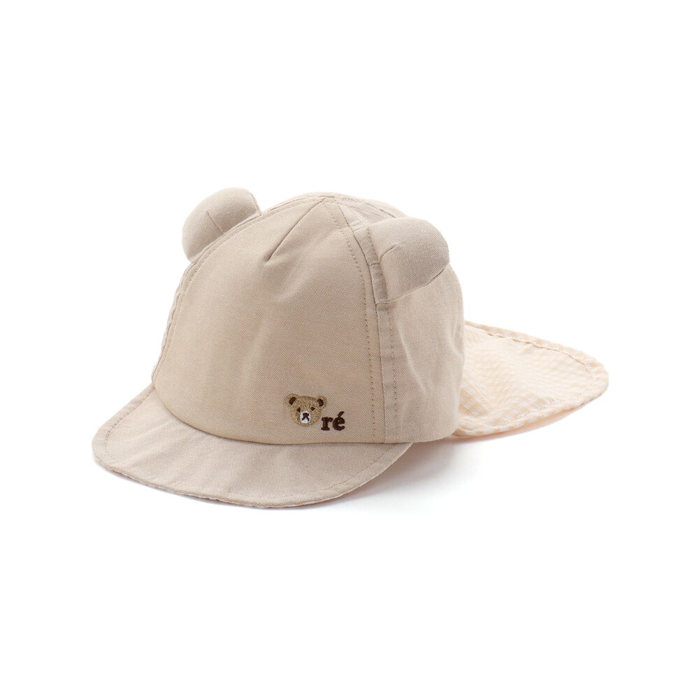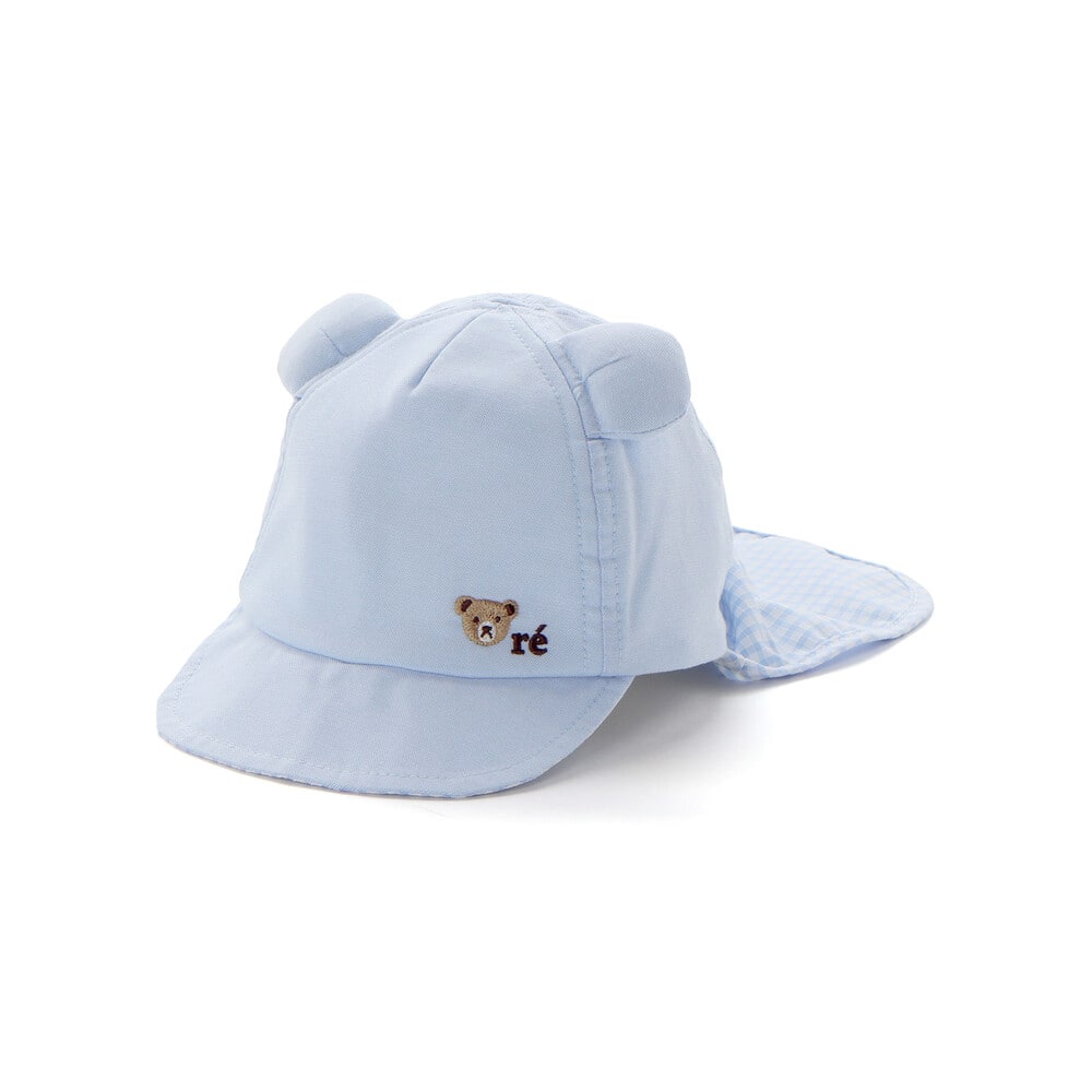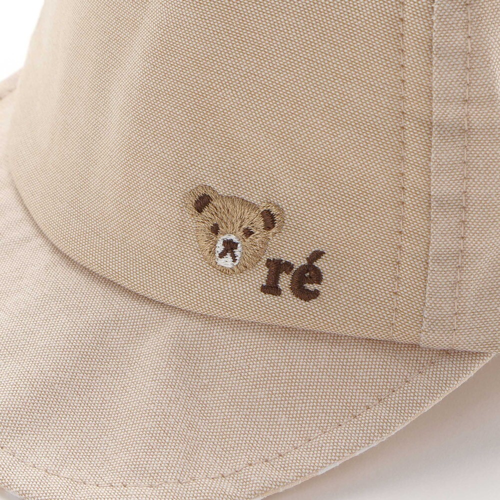 つばの上部にかわいらしいルダクティオンの人気キャラクター、くまの「ルウちゃん」の刺しゅうが入っているのがポイント。