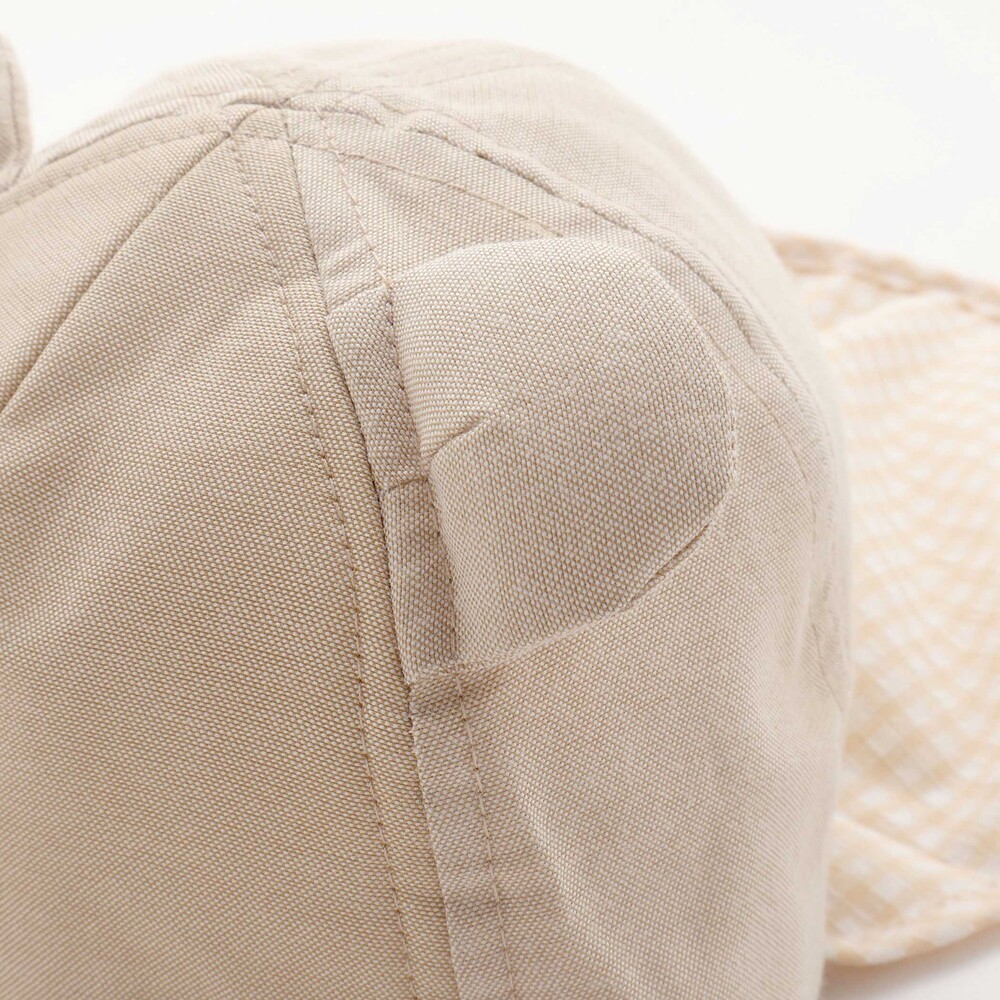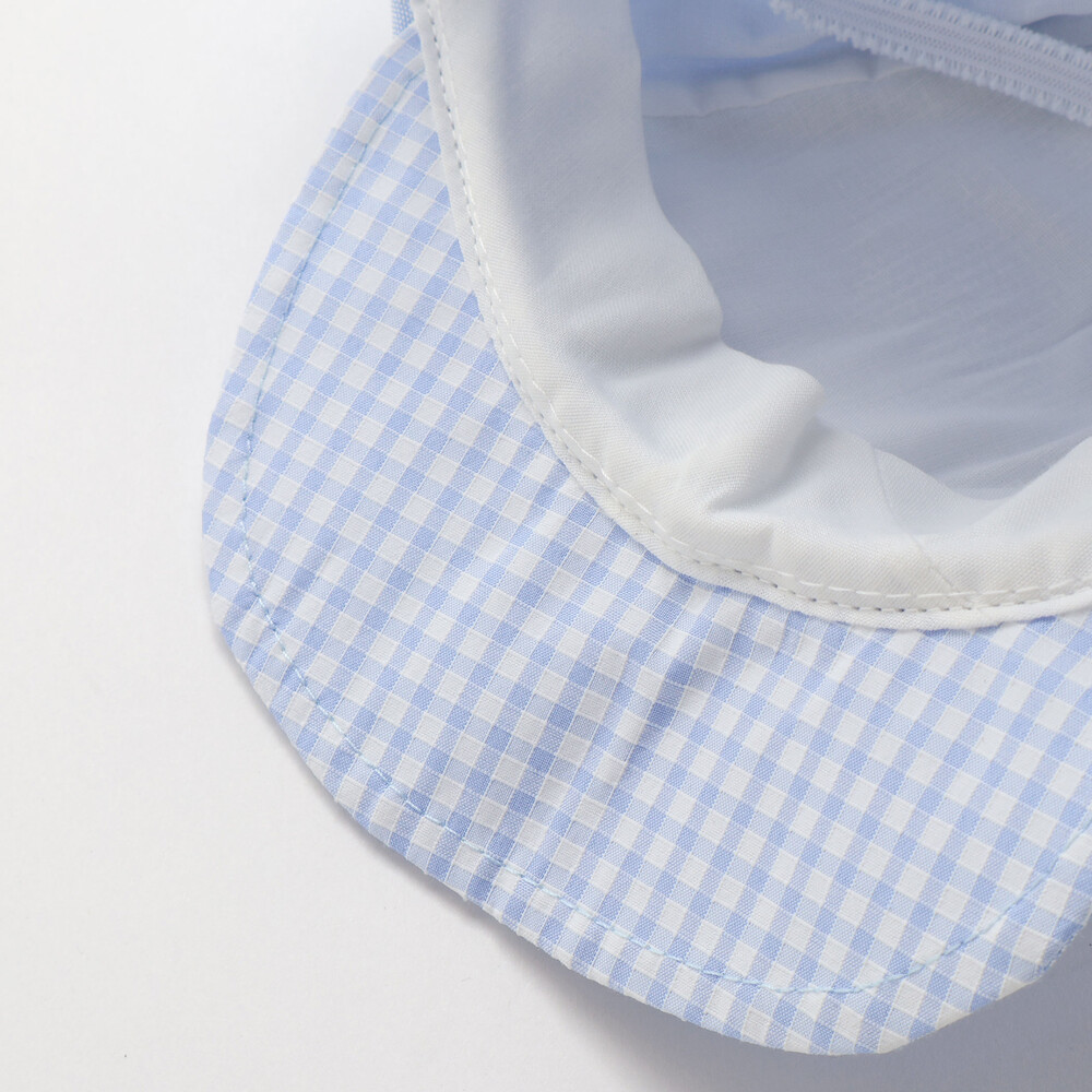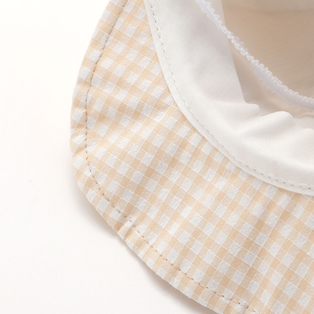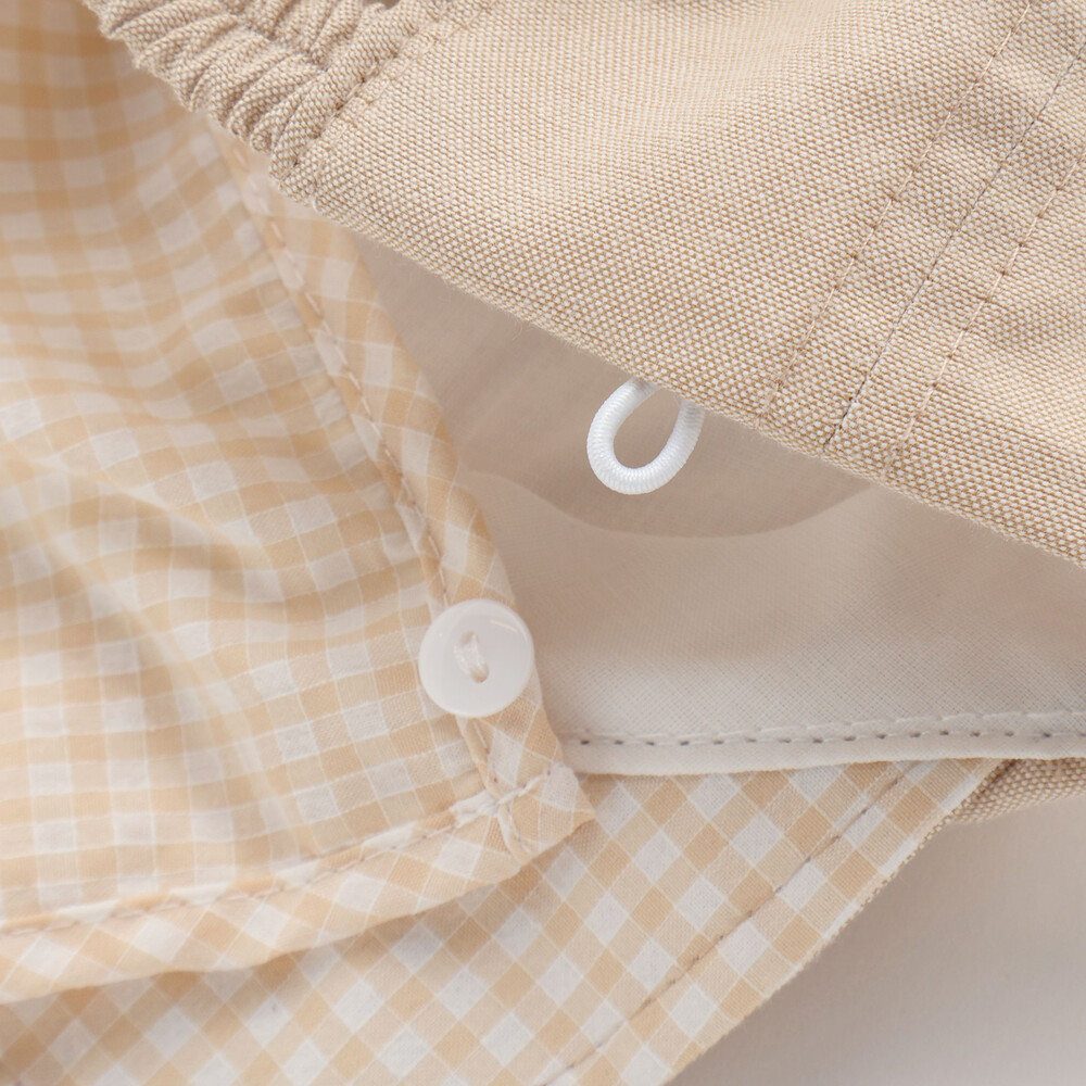 後ろにはボタンで取り外し可能なギンガムチェックの日よけを装備しています。