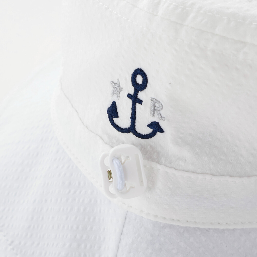 爽やかなホワイトの身生地に、サイドのイカリ刺しゅうが上品なマリンテイストを添える洗練されたデザインです。