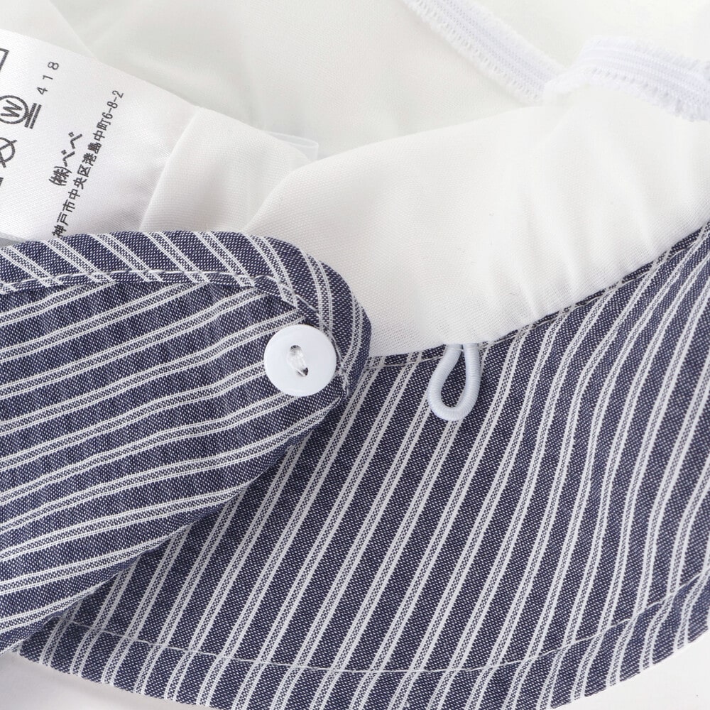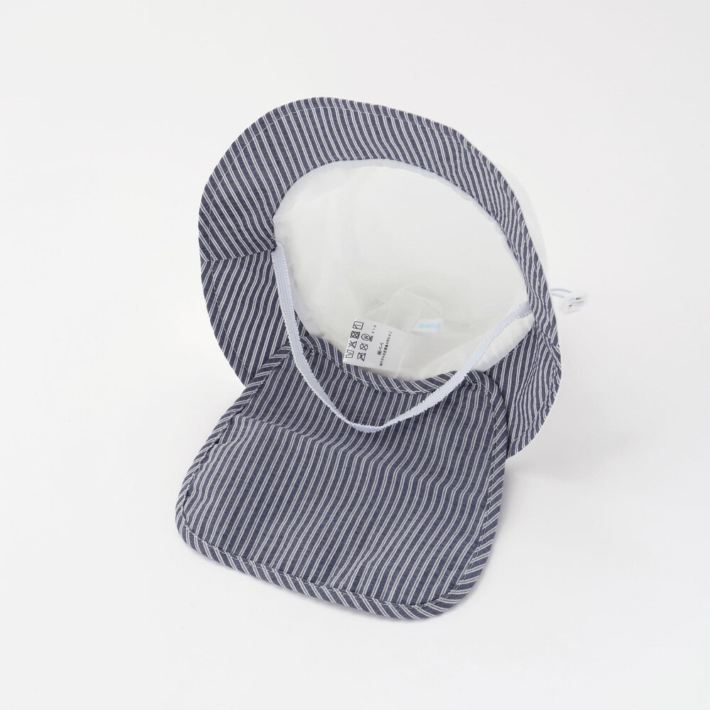 後ろにはリップルストライプを使用した日よけ布を配し、首元までしっかりと日差しからガードします。