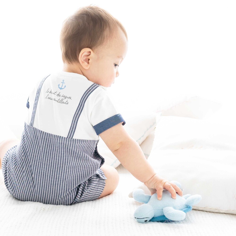 サイドにはアクセントとなるネームタグを配し、愛らしいルックスは一人遊びのお供だけでなく、マリンシリーズのお洋服と合わせたギフトにも最適です。