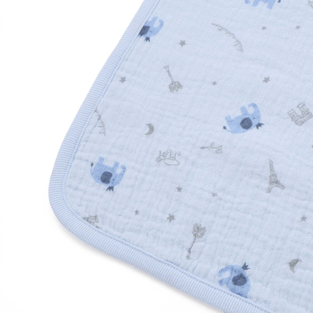 柔らかなガーゼ生地を、表面にはプリント裏面には無地を重ねた2重構造に仕上げました。