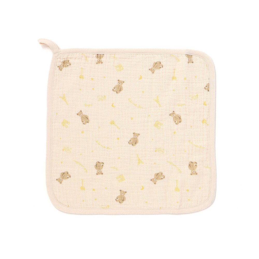 柔らかなガーゼ素材に愛らしい動物たちを散りばめた、ループ付きの男女兼用ハンドタオルです。