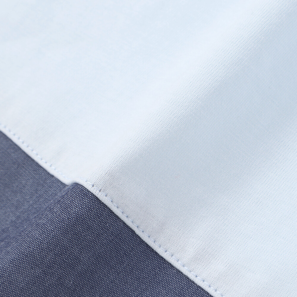 袖口にはリップルストライプをあしらい、裾の切り替え部分にはダンガリーを使用することで、爽やかなマリンテイストのアクセントを添えました。