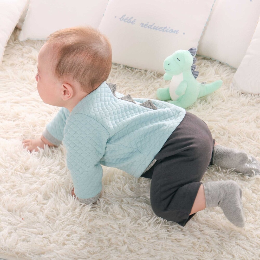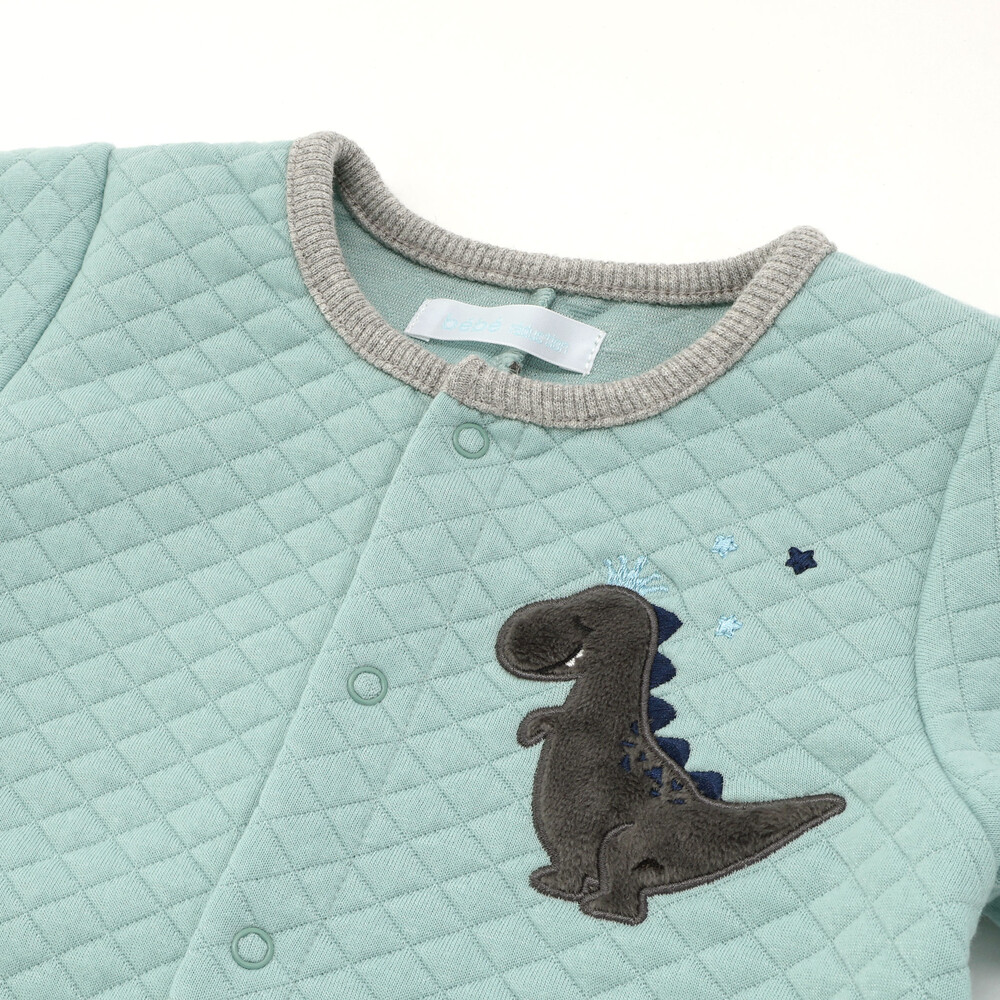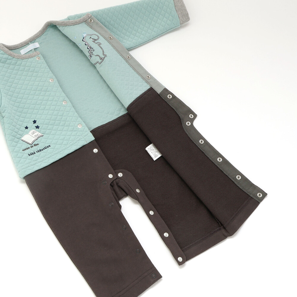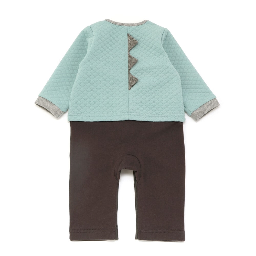 おとぎ話の世界から飛び出したような、恐竜の王子様が可愛らしい男の子用長袖カバーオール。