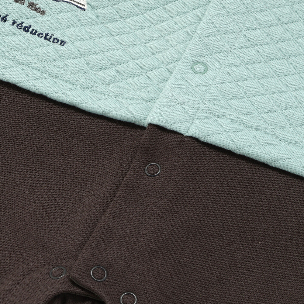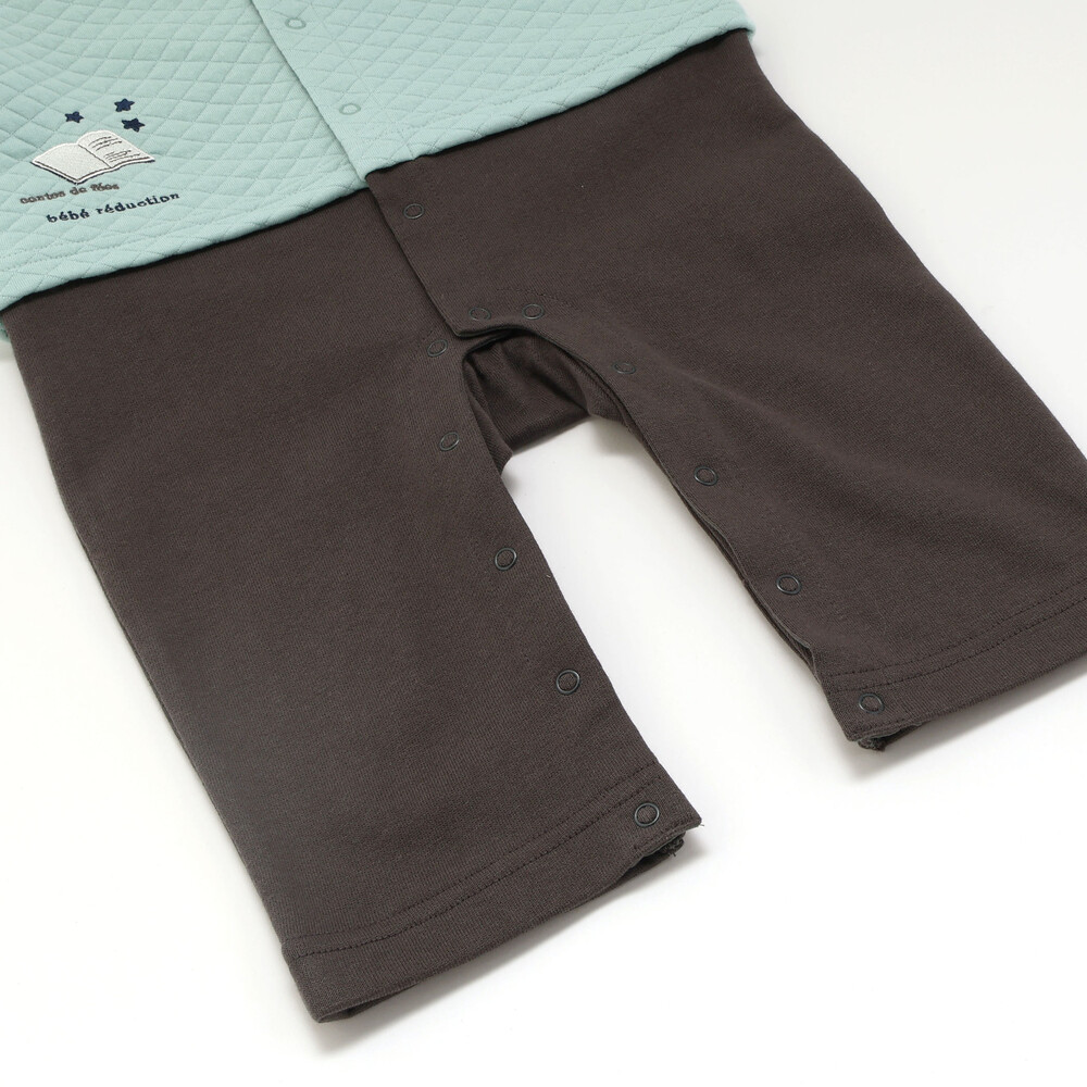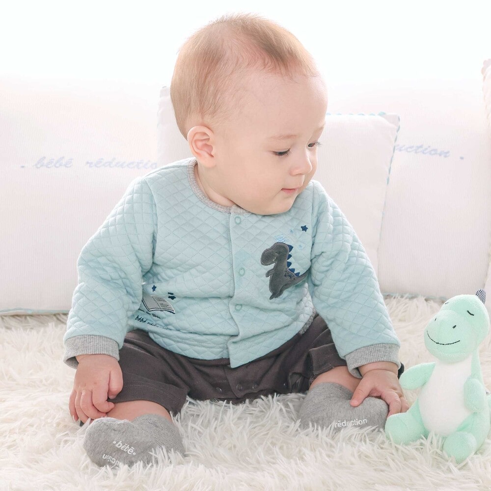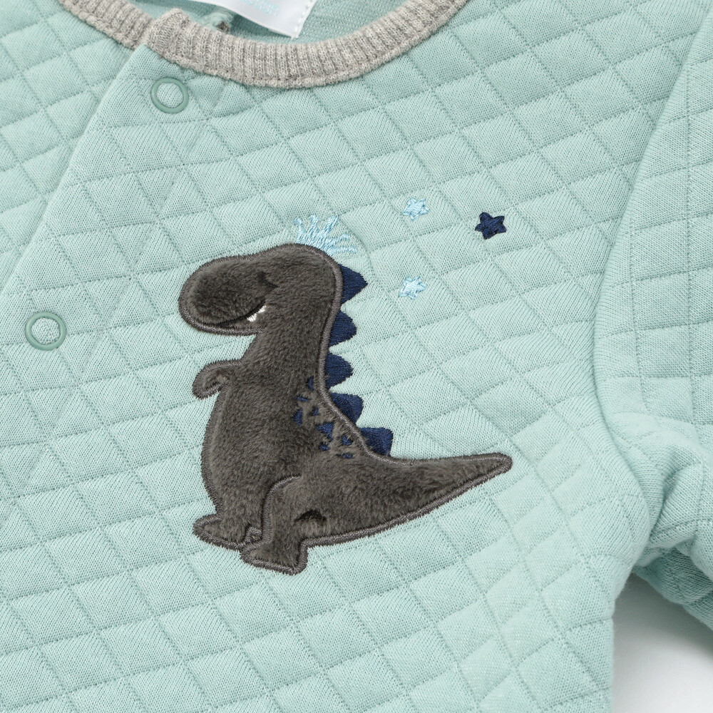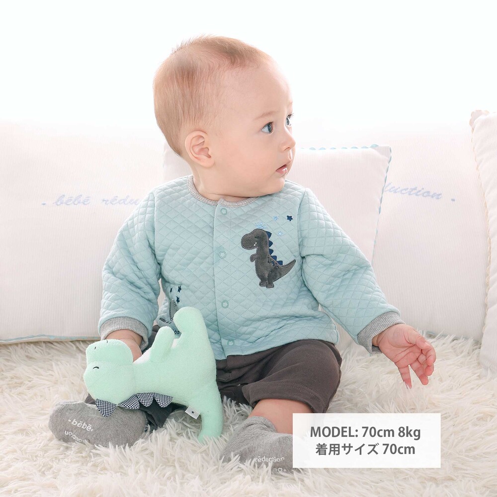 おとぎ話の世界から飛び出したような、恐竜の王子様が可愛らしい男の子用長袖カバーオール。