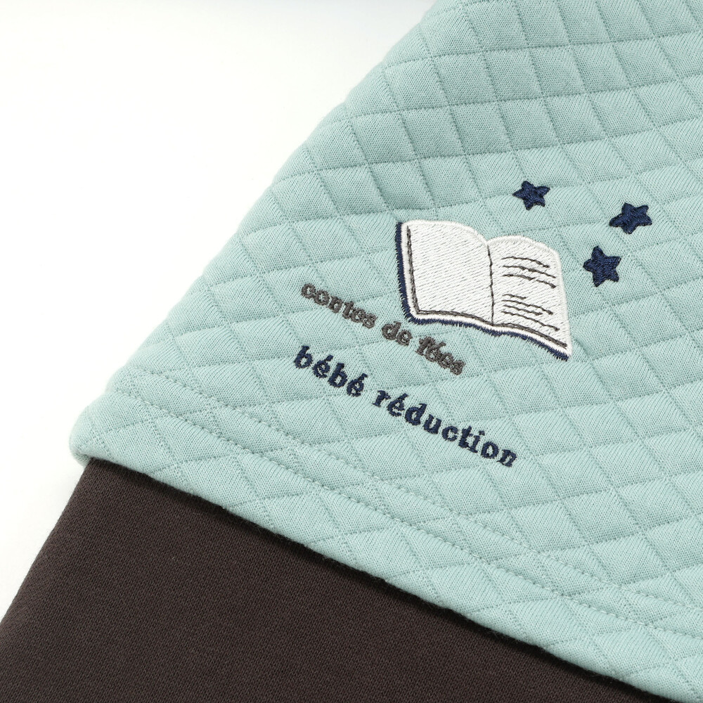 左裾にはおとぎ話という意味のフランス語の文字とともに、開かれた本と星のモチーフが描かれており、夢のある可愛らしい世界観を表現しています。