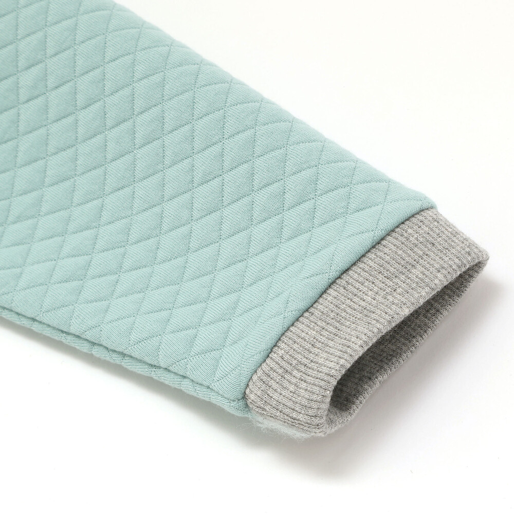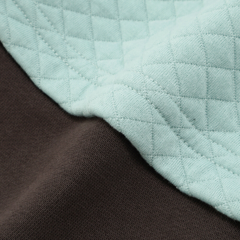 身生地にはふっくらとした中綿入りのキルト素材を使用しており、軽くて高い保温性があります。