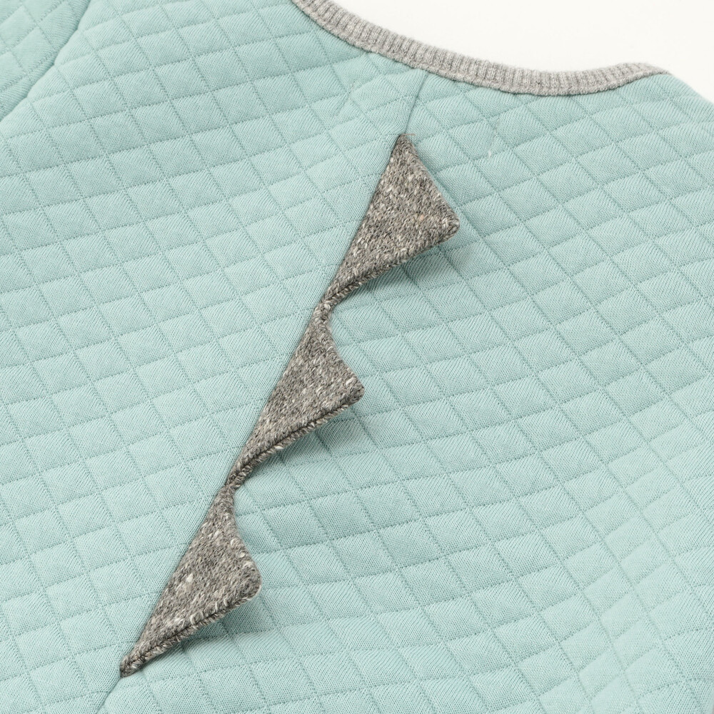 後ろには恐竜の背びれを模したギザギザの装飾が取り付けられており、お子様の後ろ姿をさらに可愛らしく演出します。