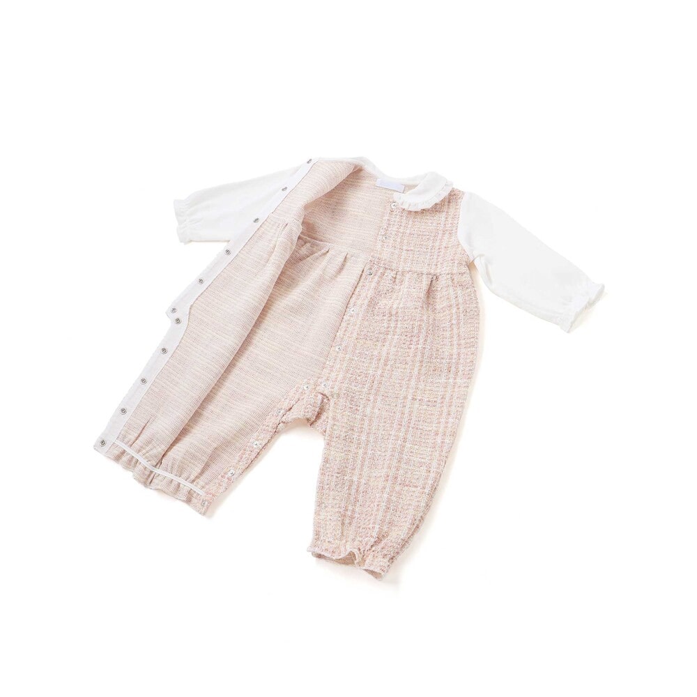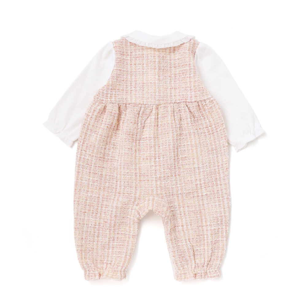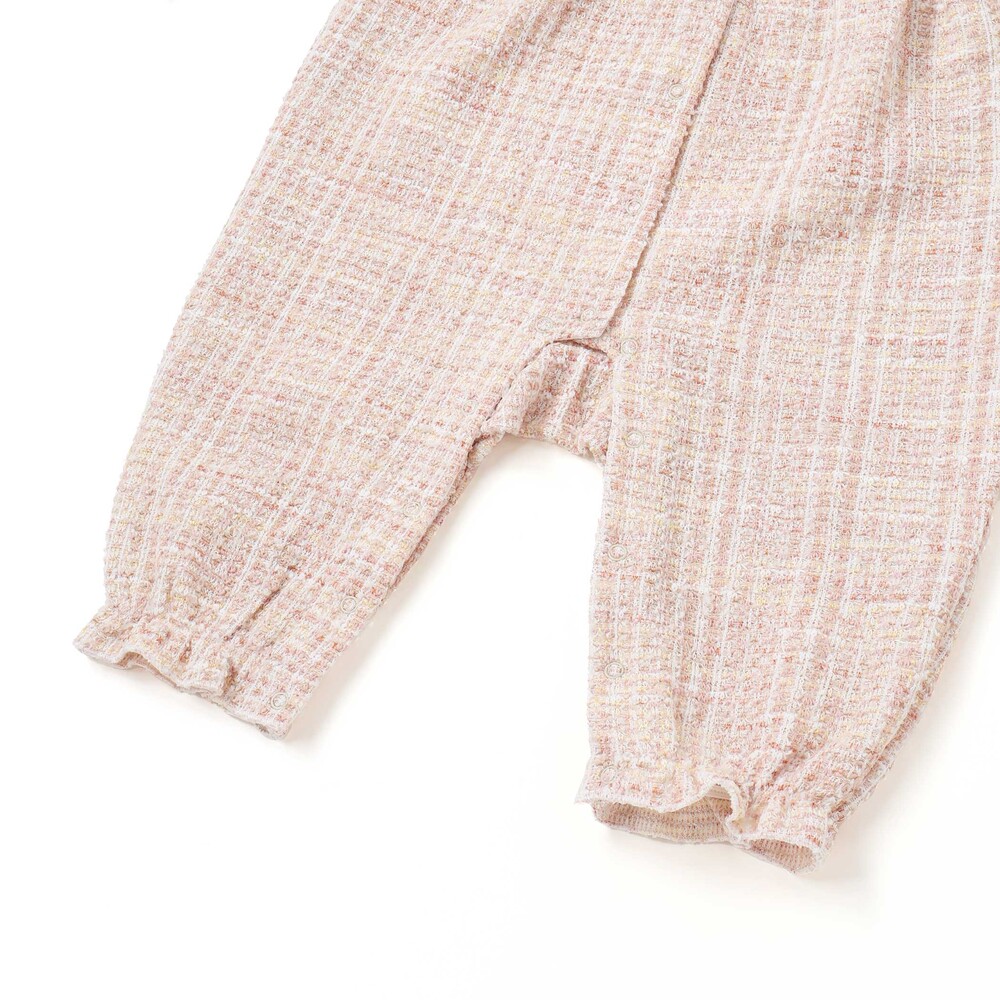 ツイードジャガードの素材感とフリルが可愛らしい、上品な女の子用カバーオール。