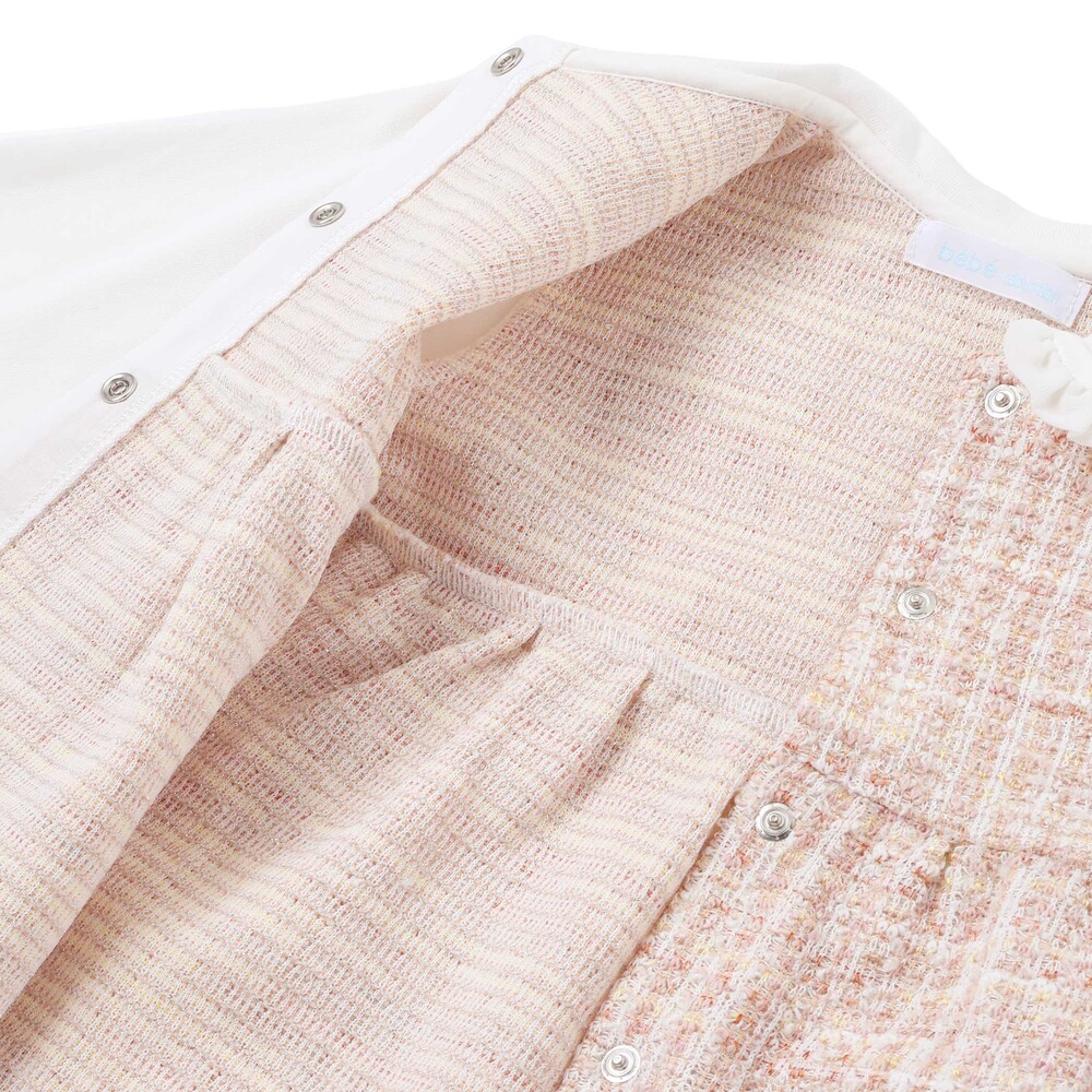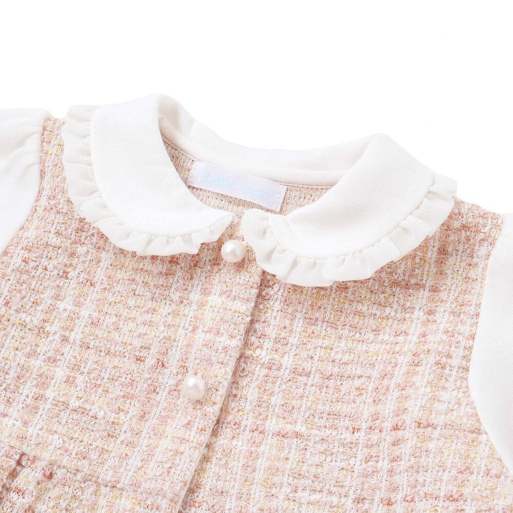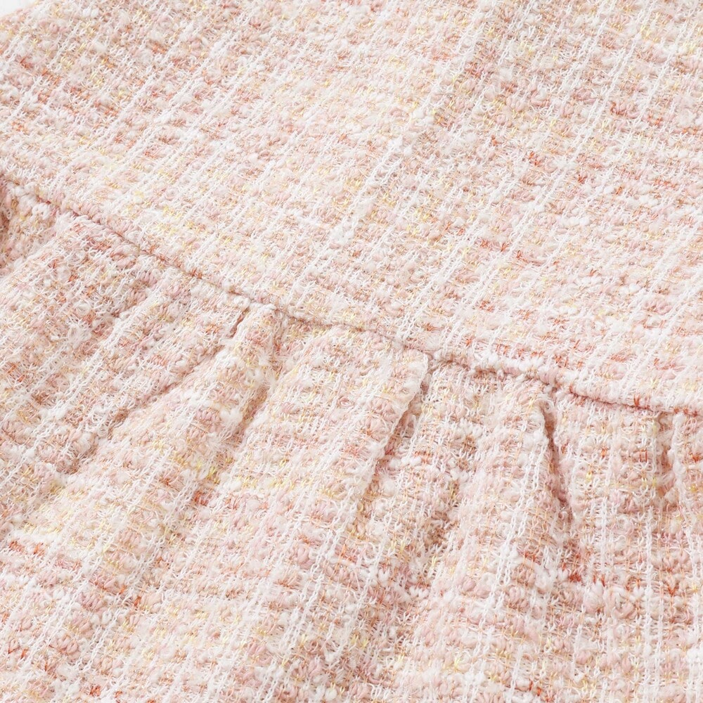 身頃のツイードジャガードが、着るだけでぐっとおしゃれな印象を高め、まるで小さなレディのような上品なスタイルに。