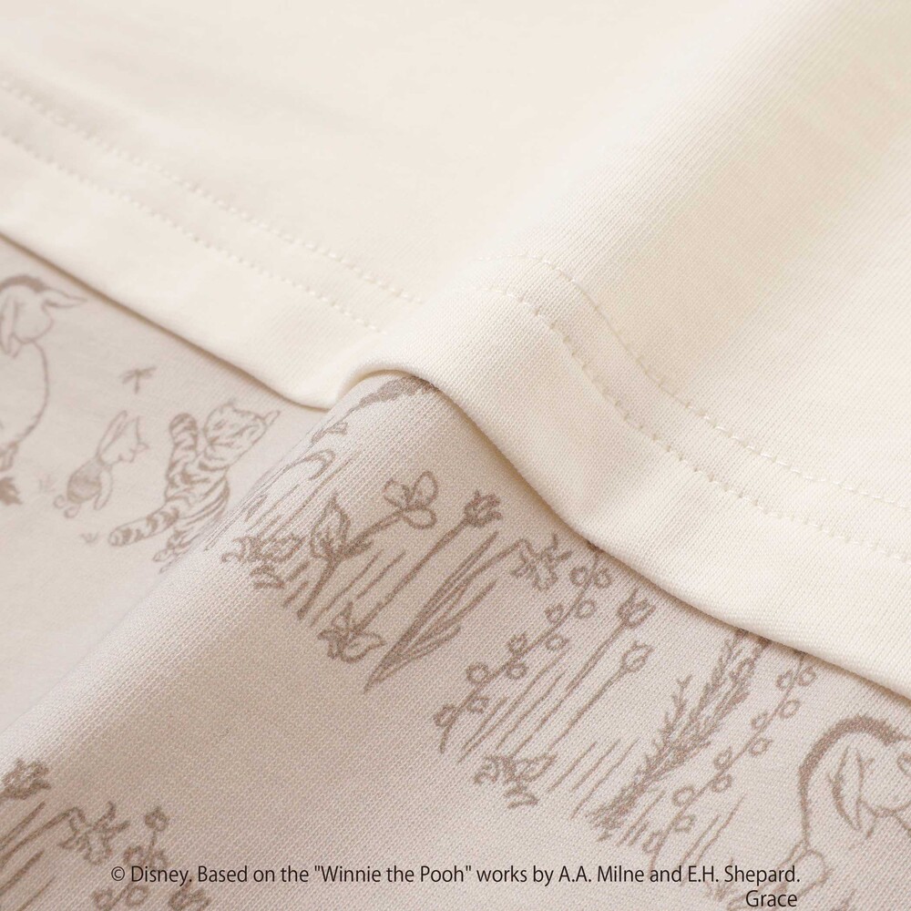 ボトム部分や見返し部分には、プーさんの総柄プリントを大胆に使用。