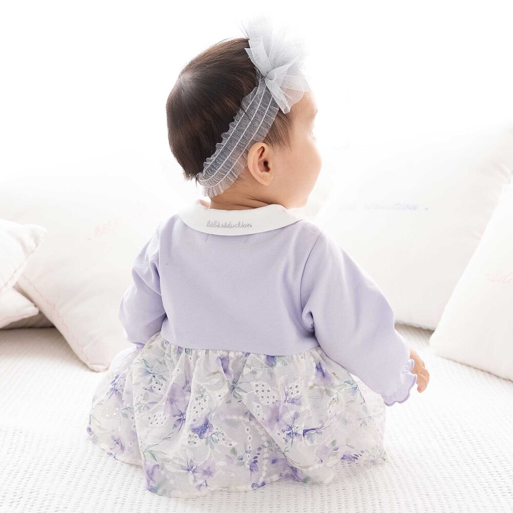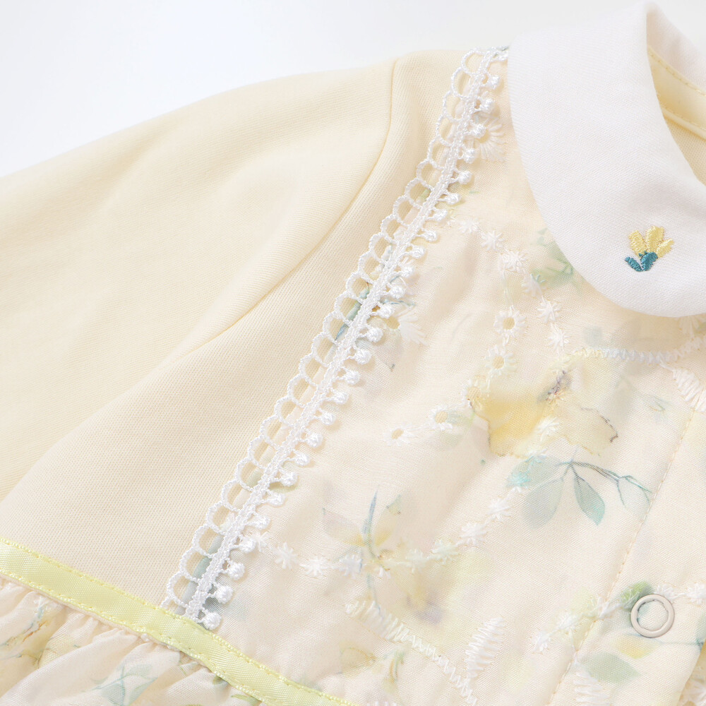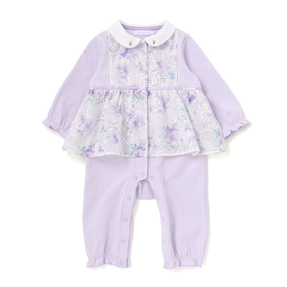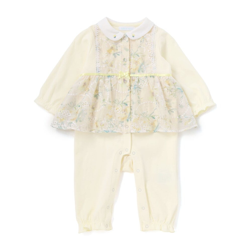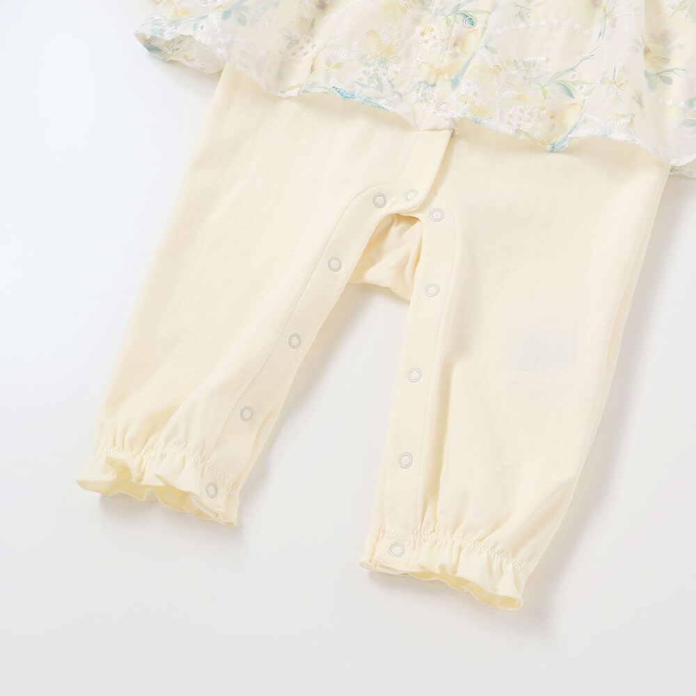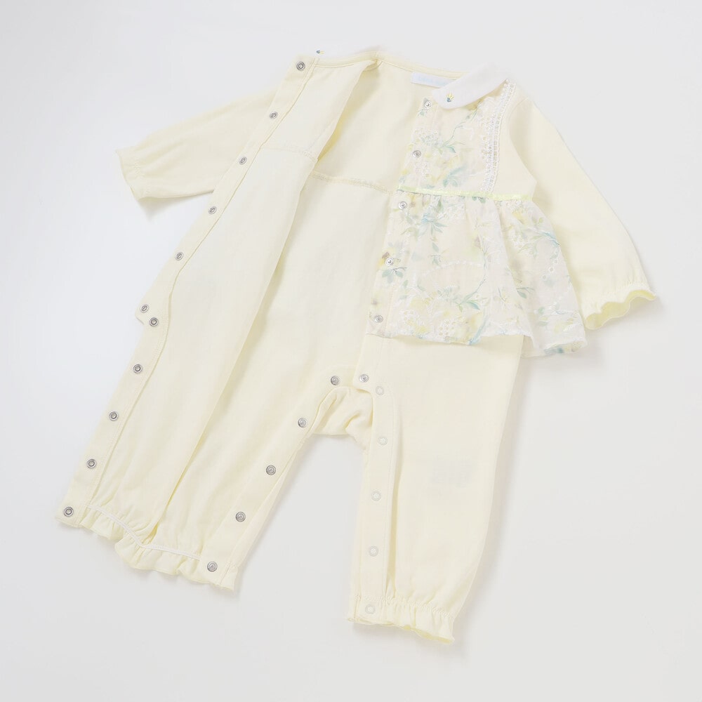 特別な日を彩る、愛らしい上品な女の子ベビー用カバーオールです。