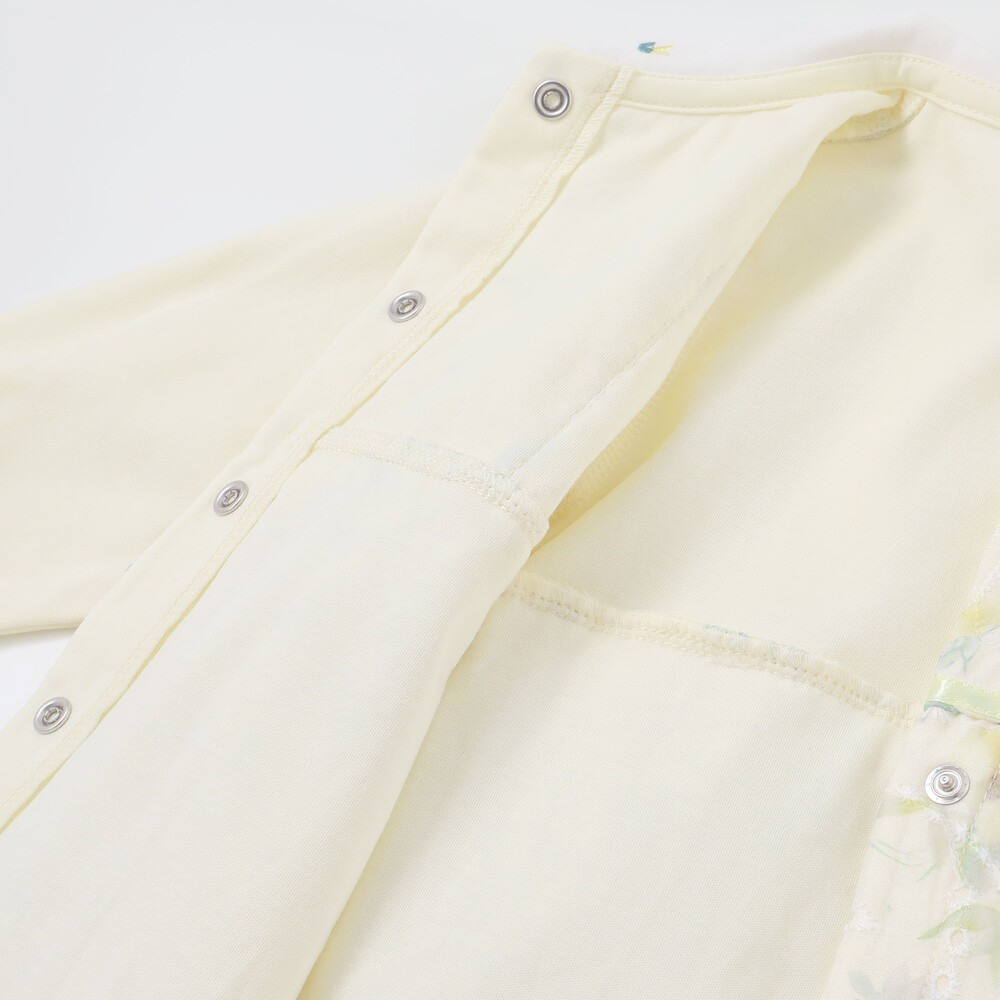 ホックで股下まで大きく開くので首が座る前の赤ちゃんを寝かせてのお着換えもラクラク♪