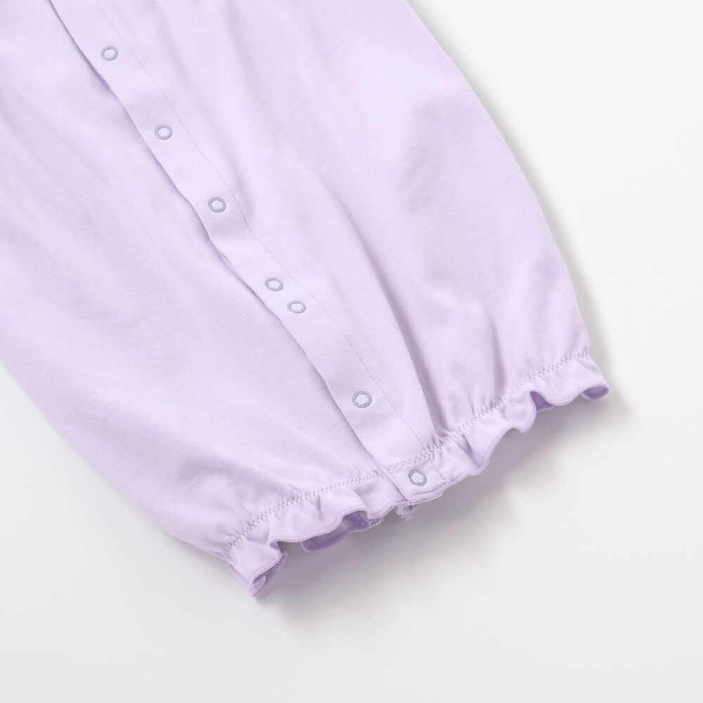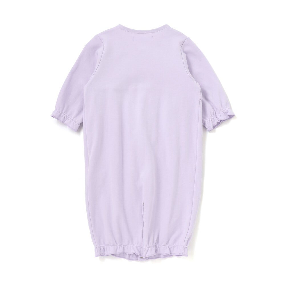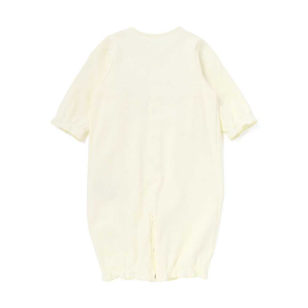 股下のホックの留め方を変えるだけで、ドレス型(新生児期)からカバーオール型(活発に動く時期)へと変形可能です。