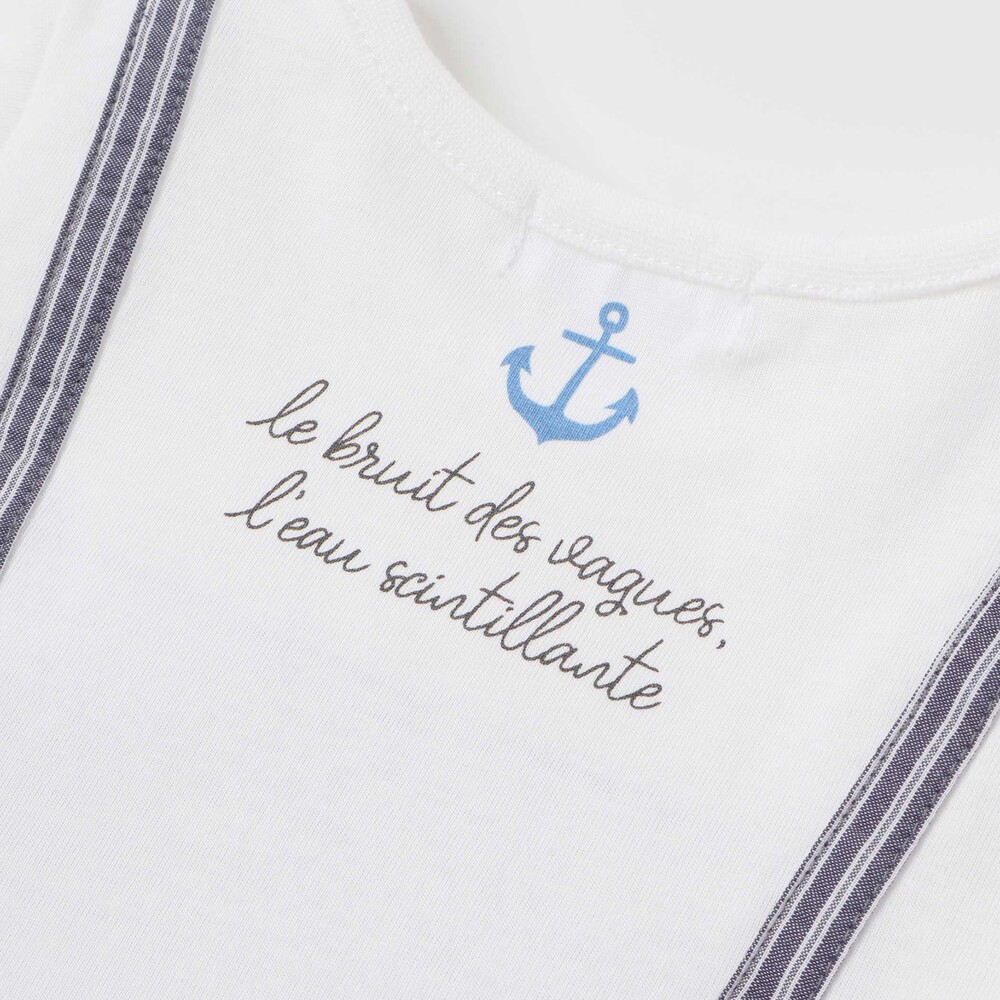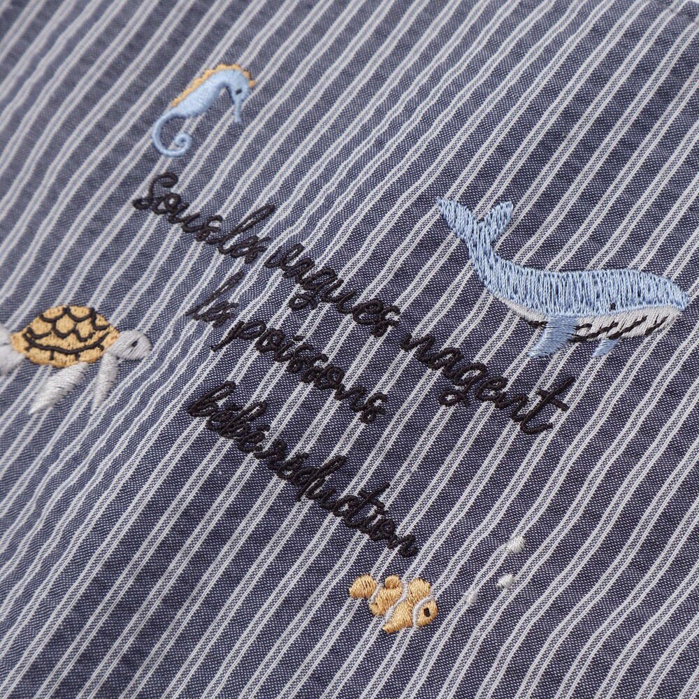 フロントには愛らしいクジラのプリントを施し、背面の襟元にはイカリのマークをあしらうなど、360度どこから見てもマリンテイスト満載の仕上がりです。