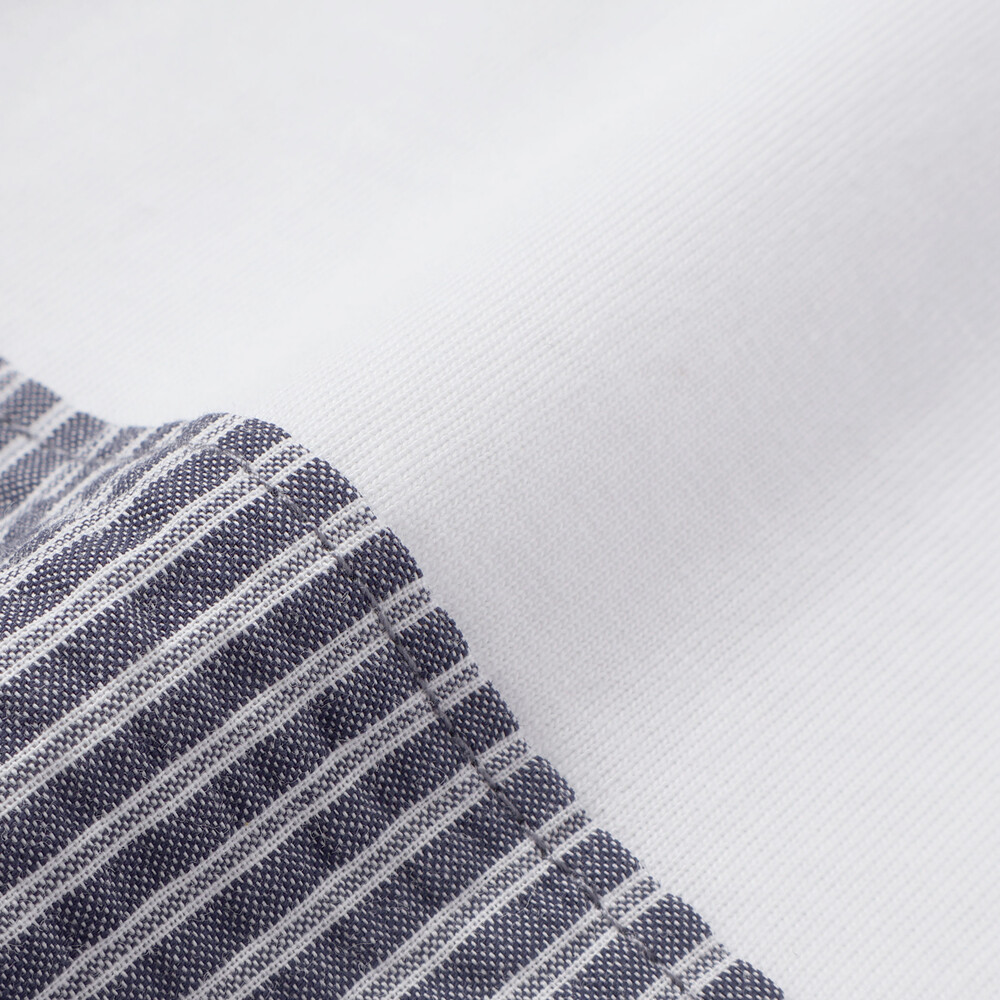 身生地にはポコポコとした凹凸が特徴のリップルストライプを使用しており、肌に触れる面積が少ないため、汗ばむ季節でもさらりと快適な着心地が続きます。