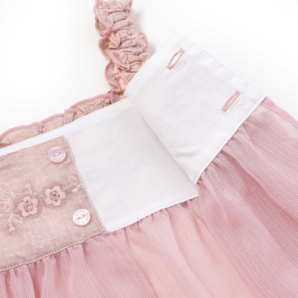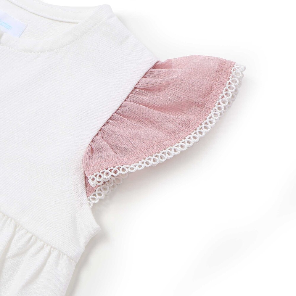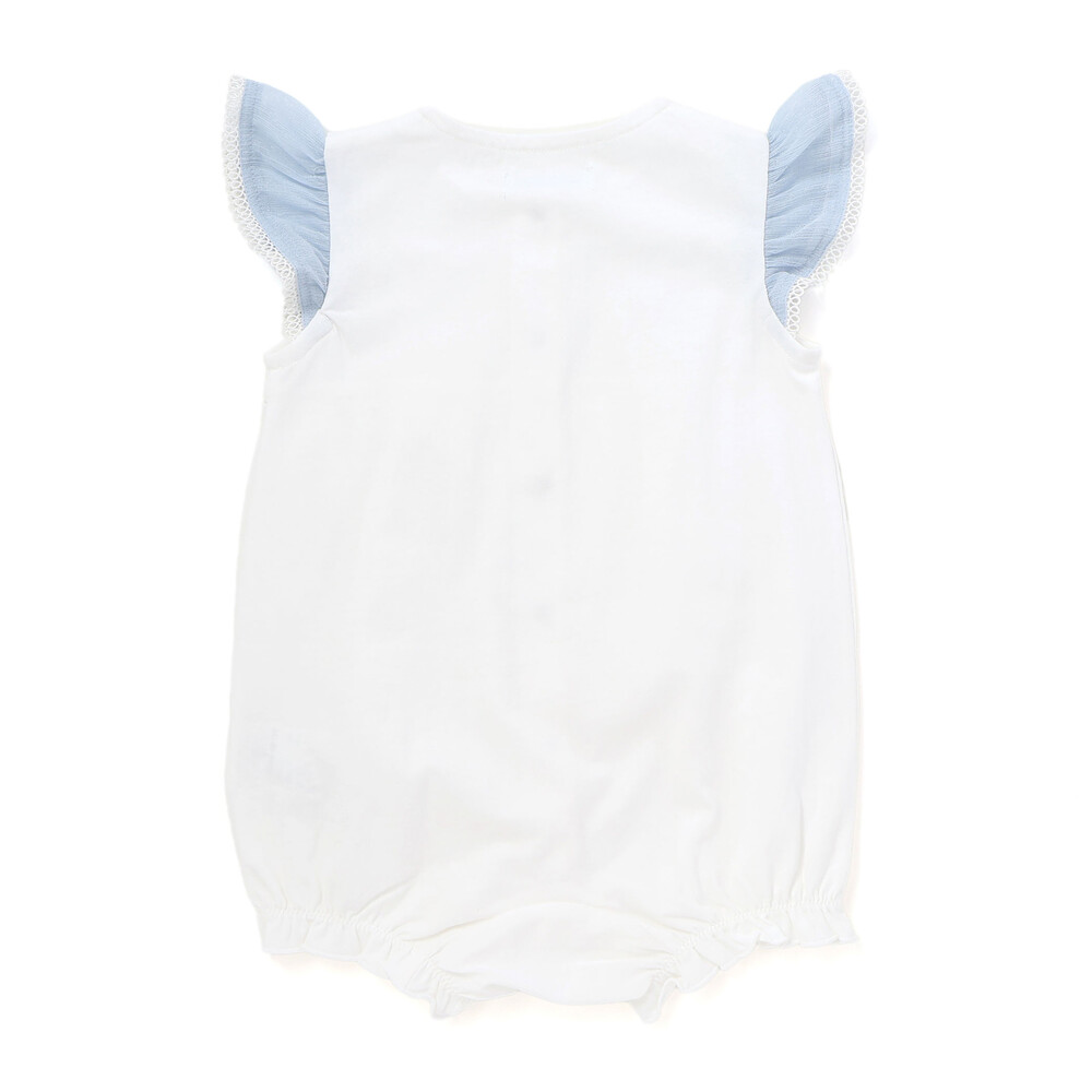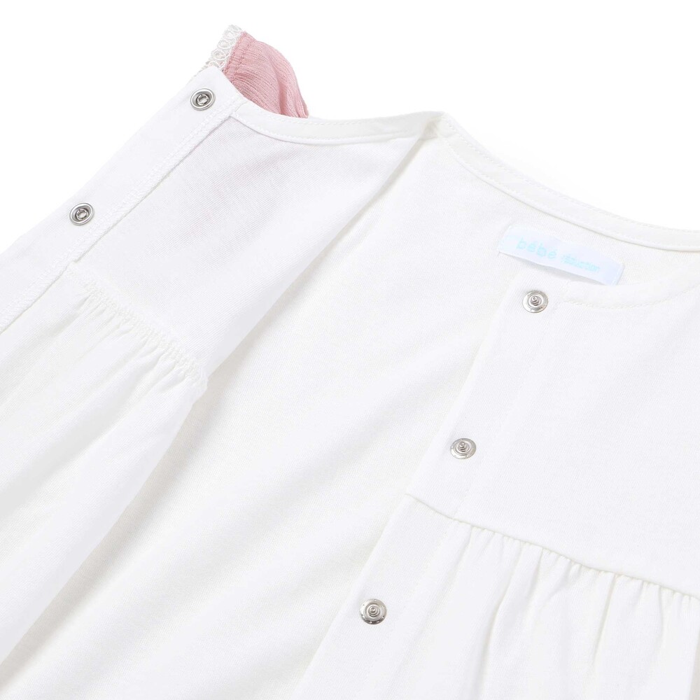 軽やかなシフォンチュニックとカバーオールがセットになった、上品な女の子ベビー用おめかしスタイル。