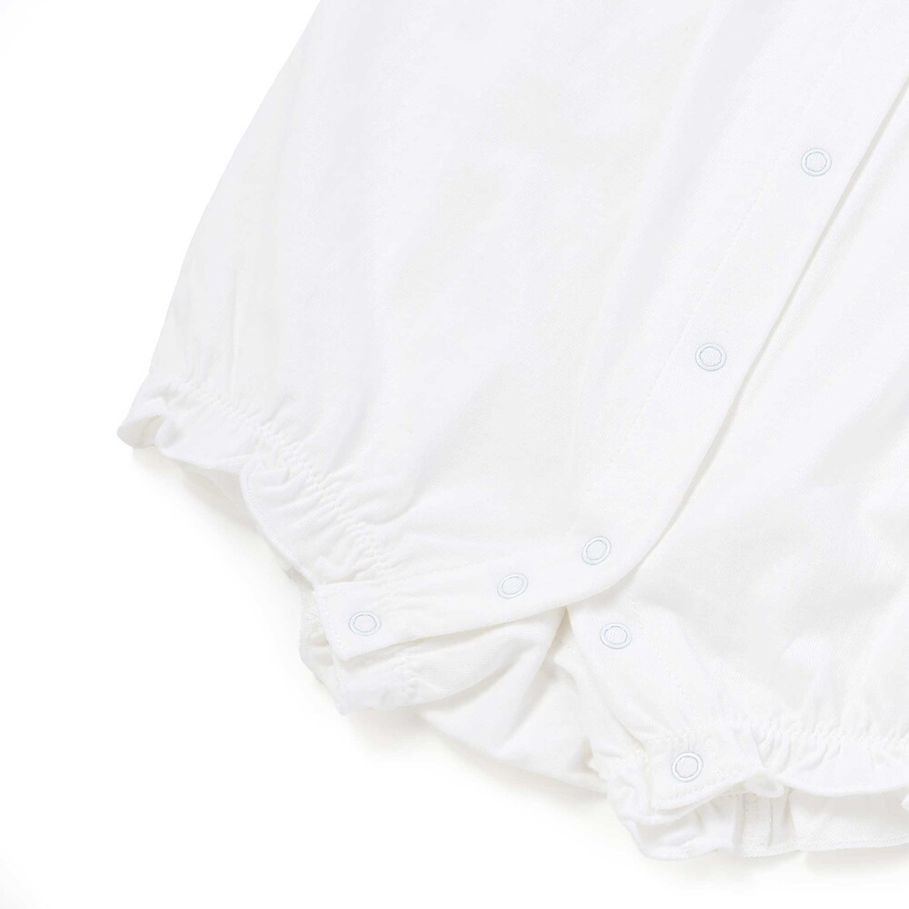 カバーオールの身生地には通気性に優れた天竺素材を使用しており、汗ばむ季節でも赤ちゃんが快適に過ごせる柔らかな肌触りです。