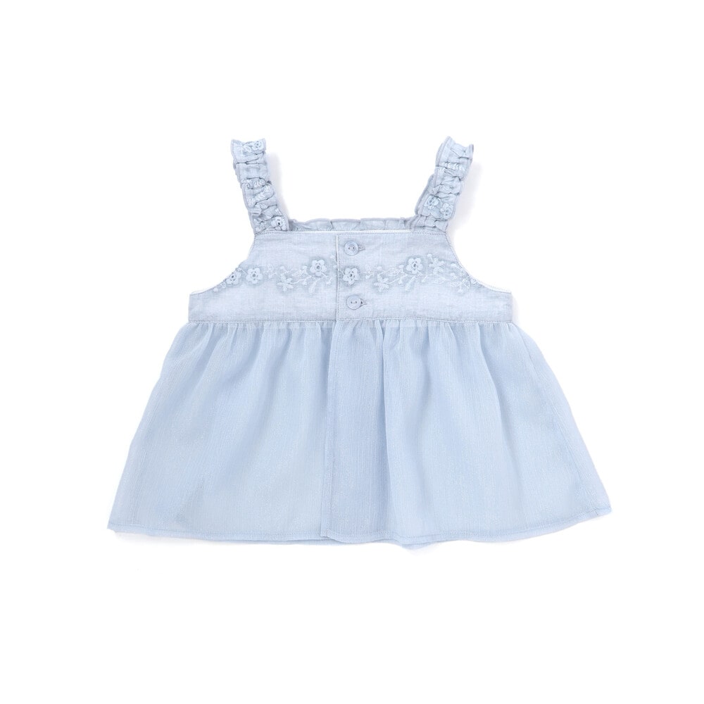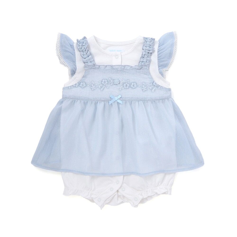 軽やかなシフォンチュニックとカバーオールがセットになった、上品な女の子ベビー用おめかしスタイル。