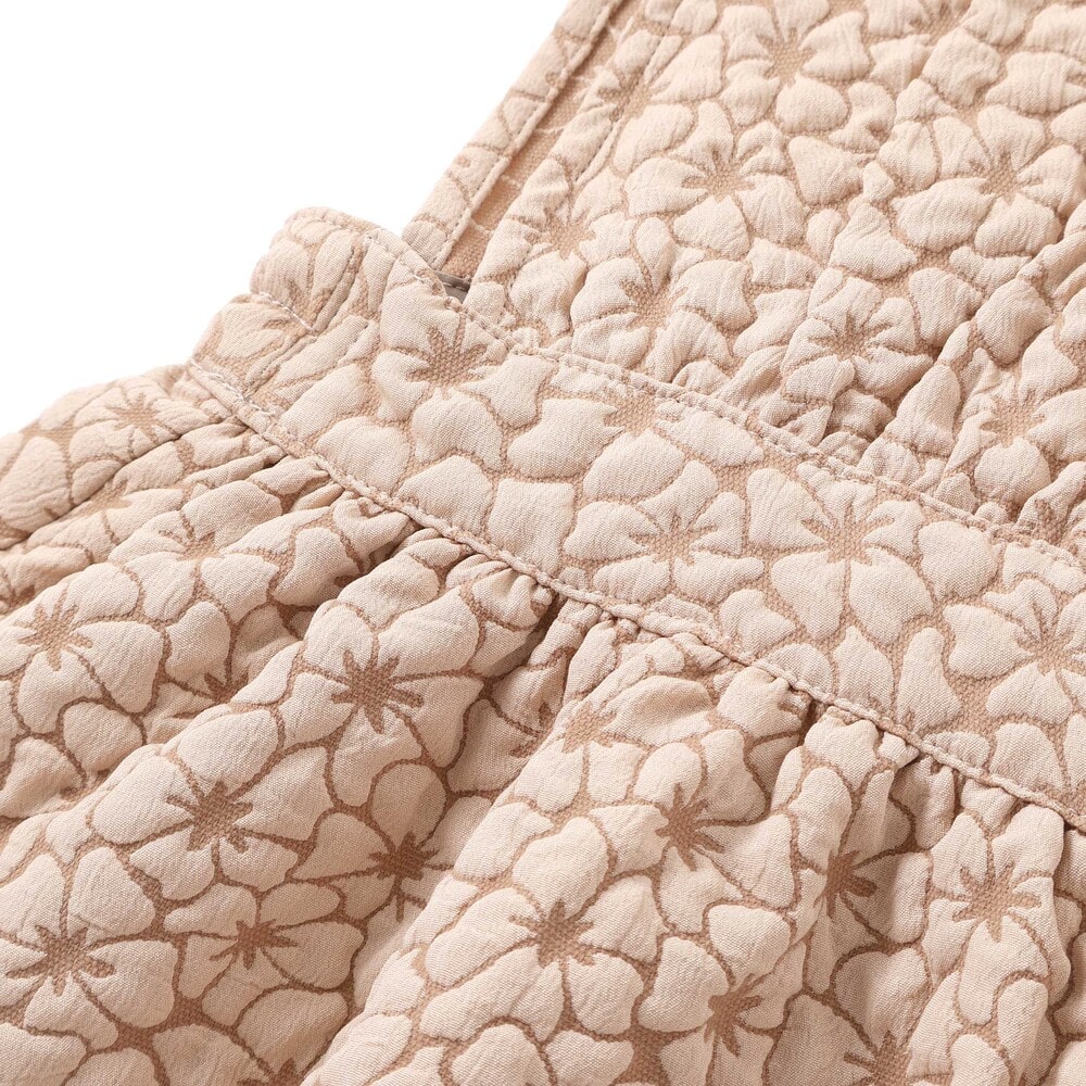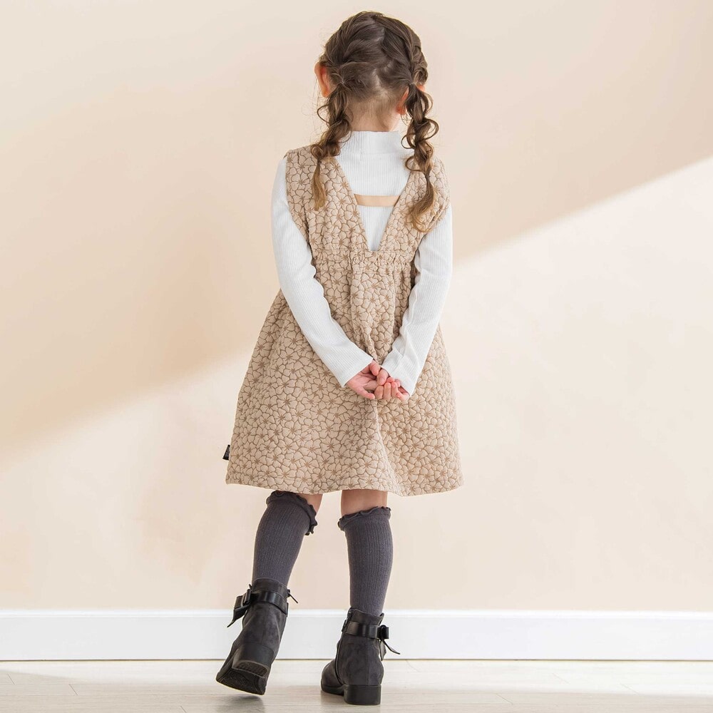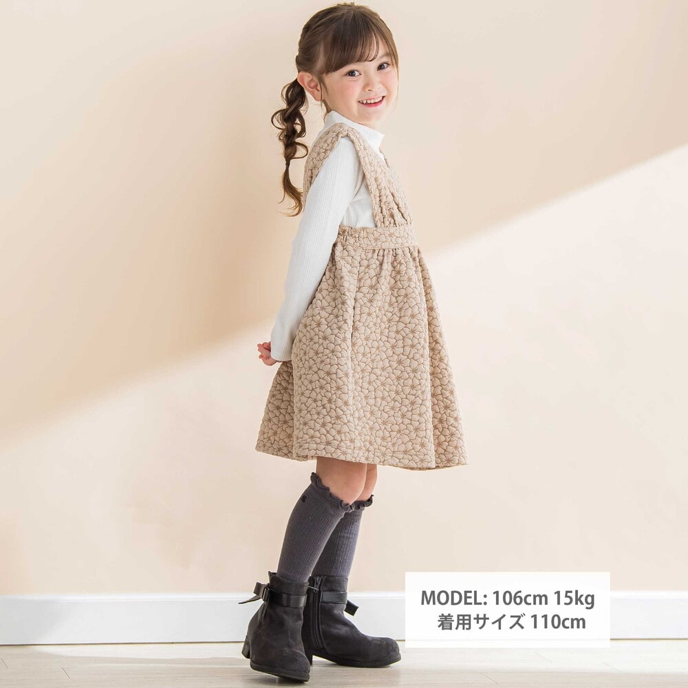 立体的に散りばめられた花柄が華やかな印象のジャンパースカート。