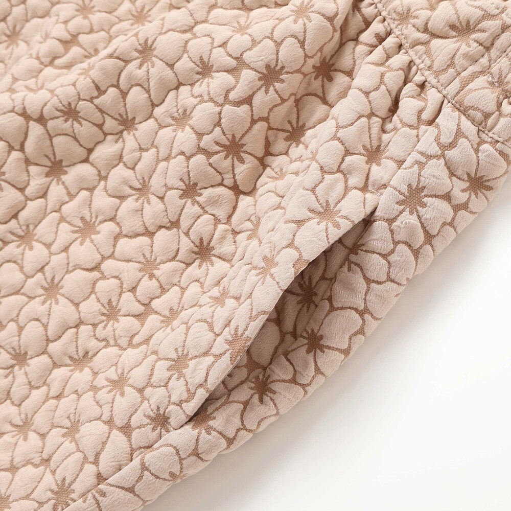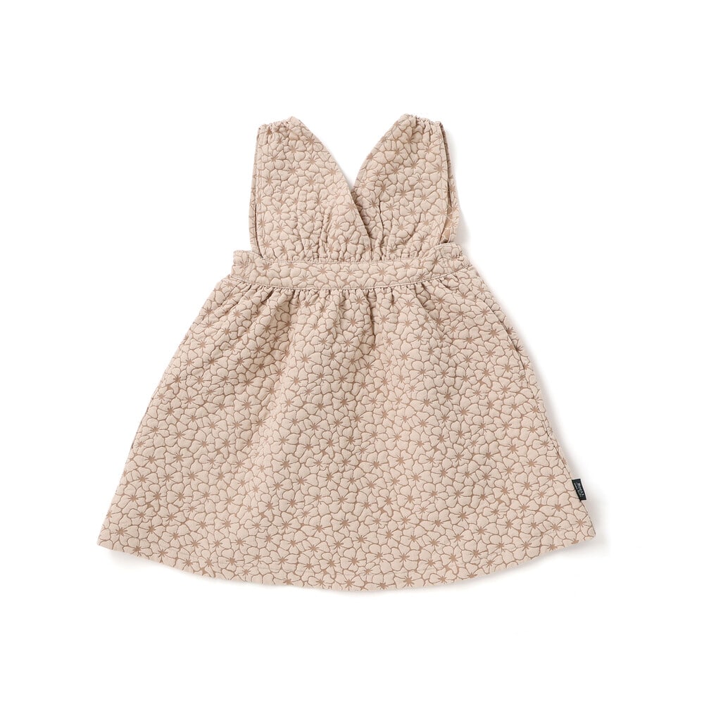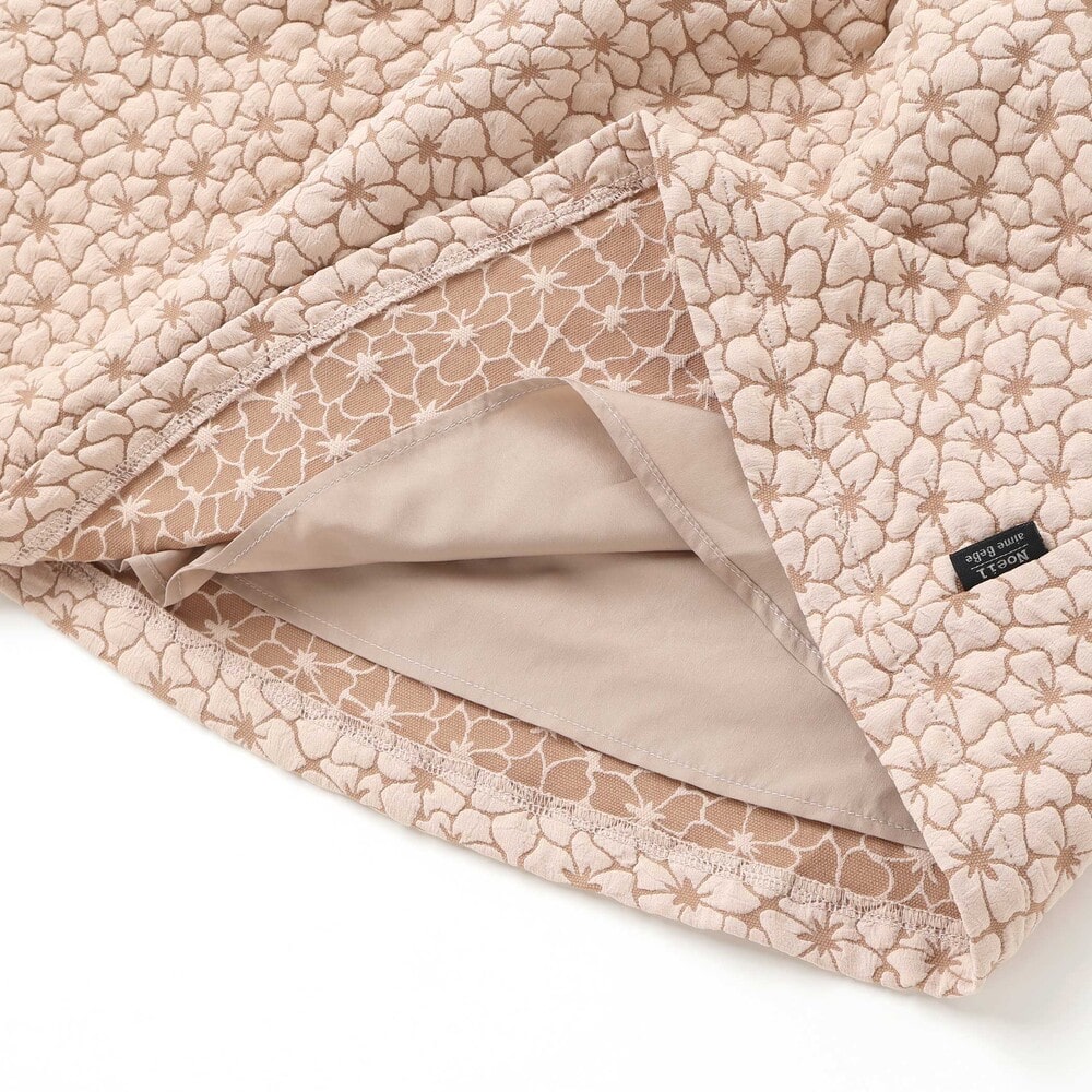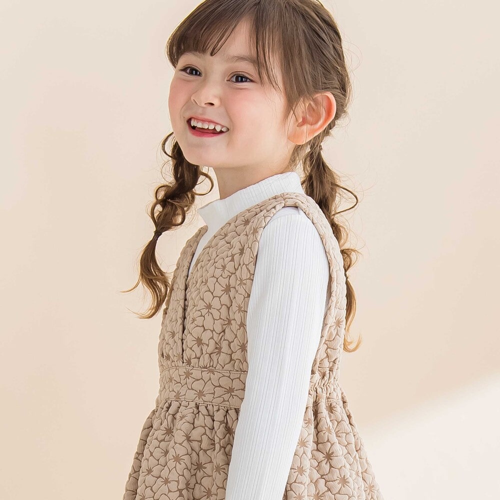 立体的に散りばめられた花柄が華やかな印象のジャンパースカート。