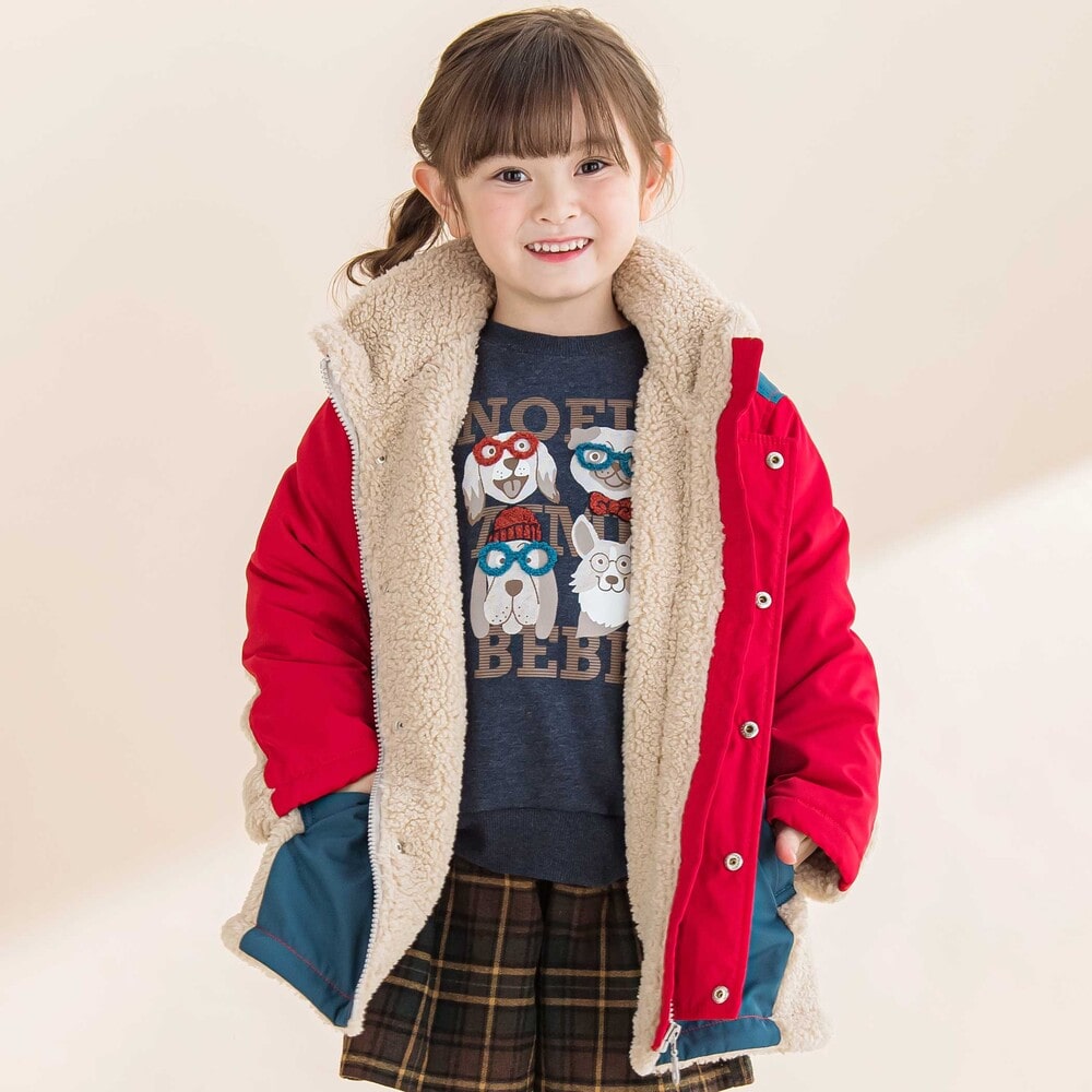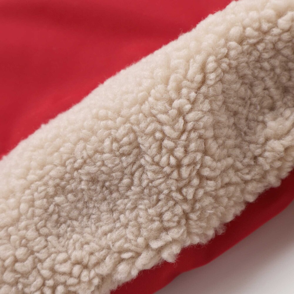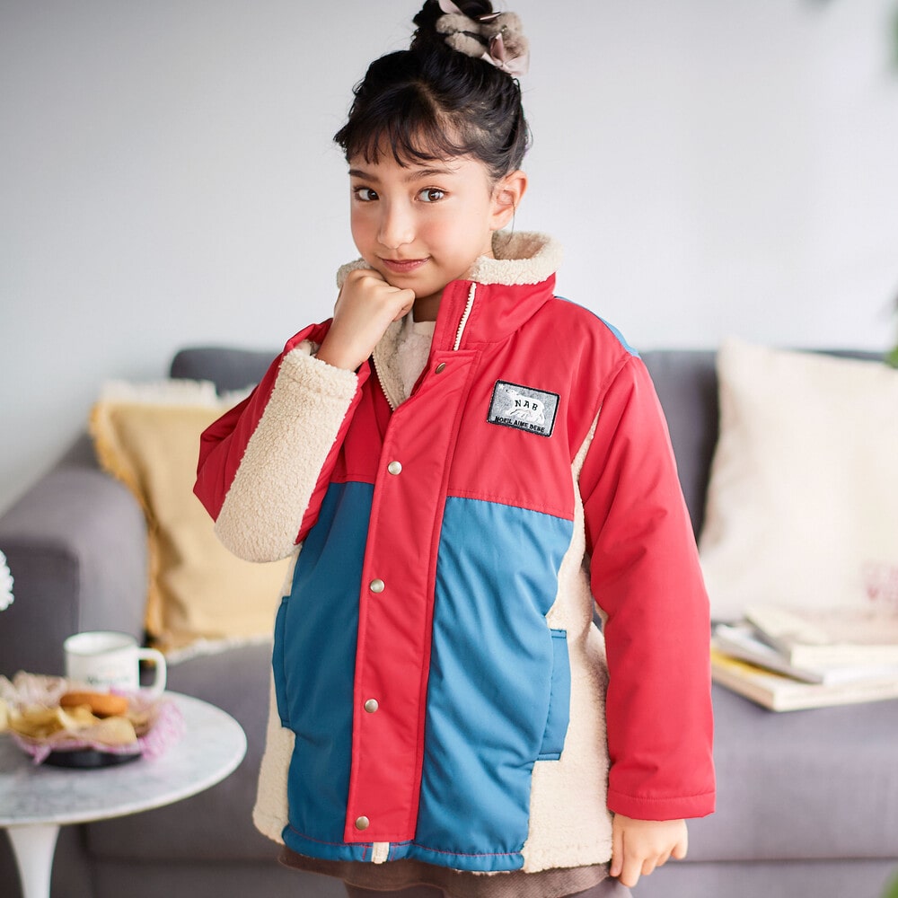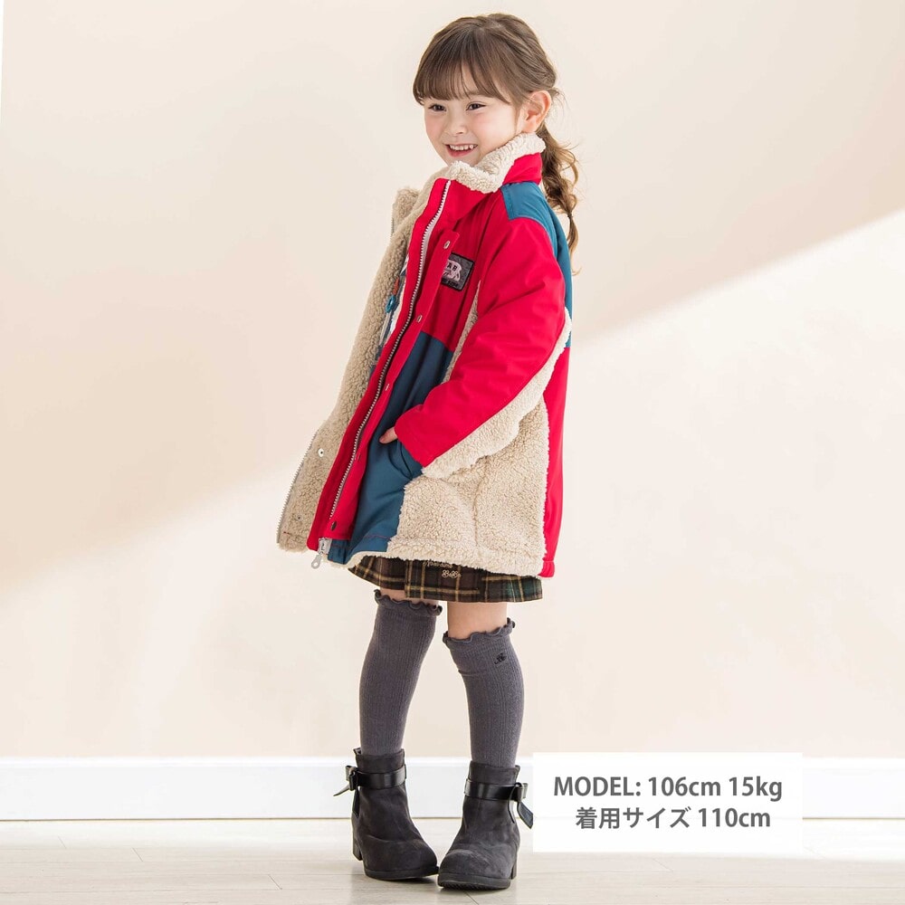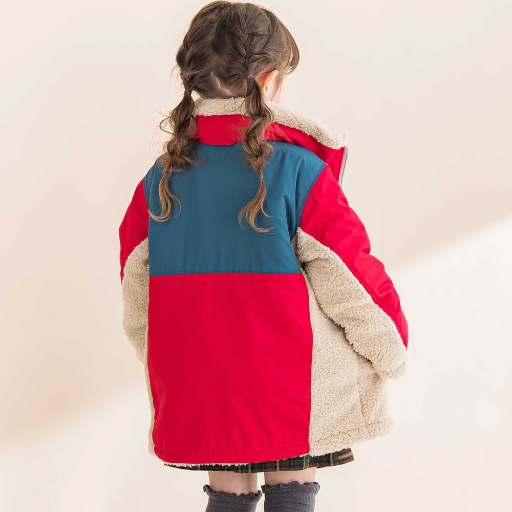 軽量でハリのある光沢感を持つタフタ素材と、ふんわり柔らかなボア素材を組み合わせることで、
