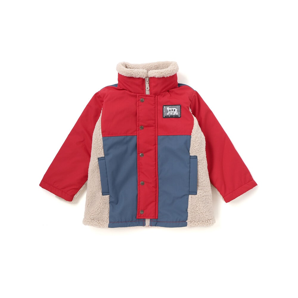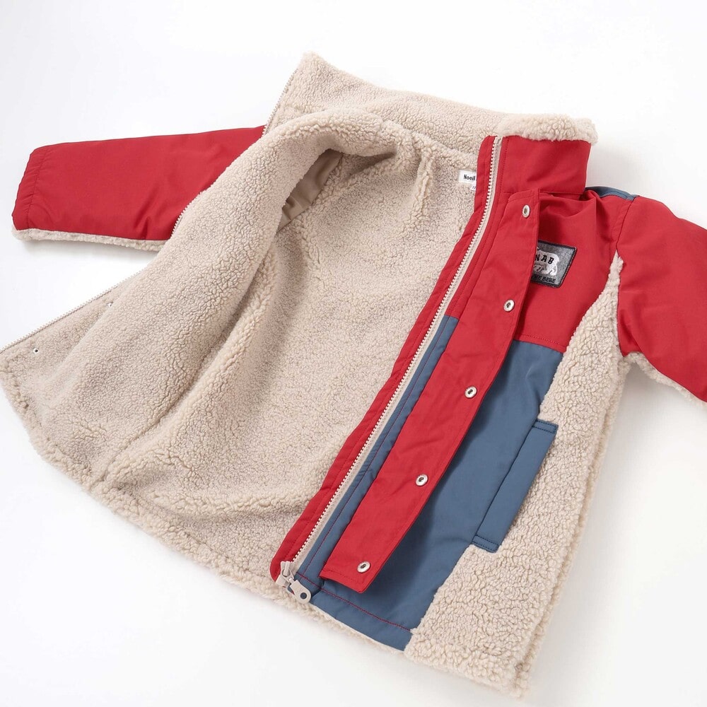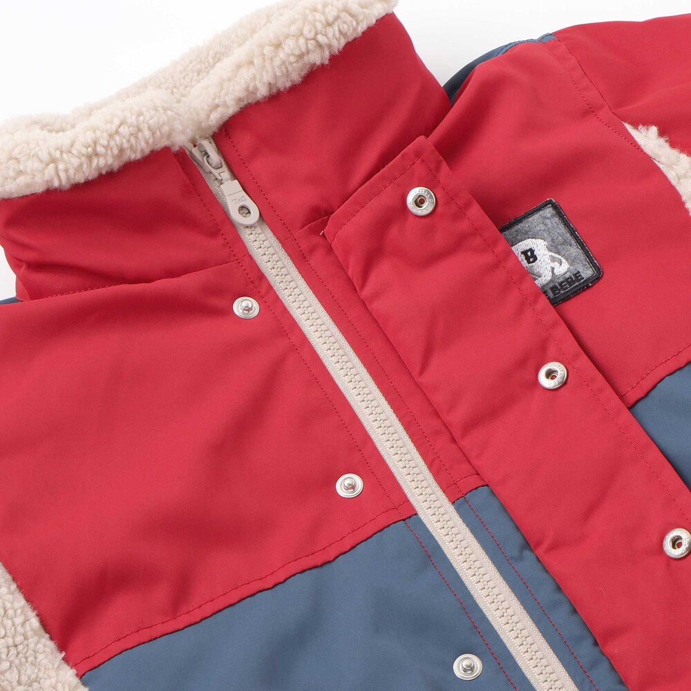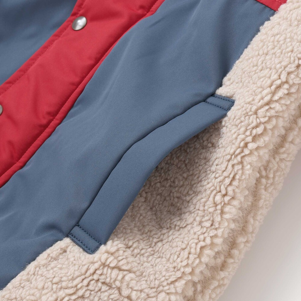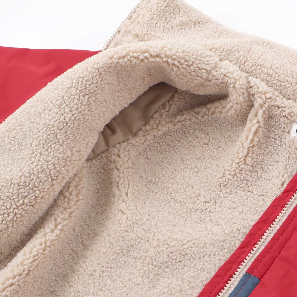 タフタとボアの異素材切り替えが目を惹く男女兼用のマウンテンパーカー。