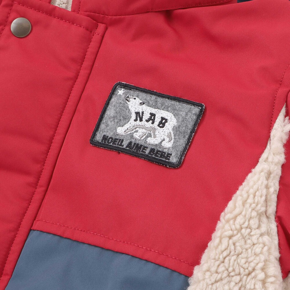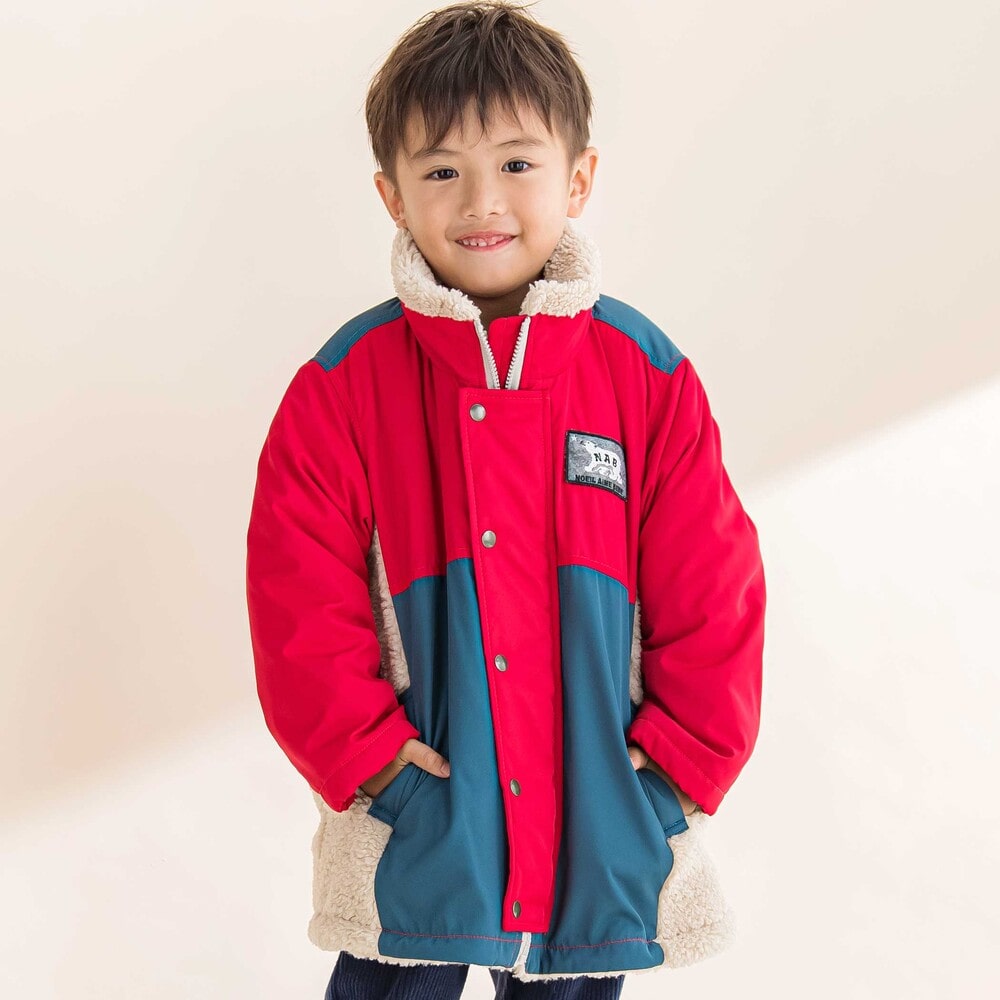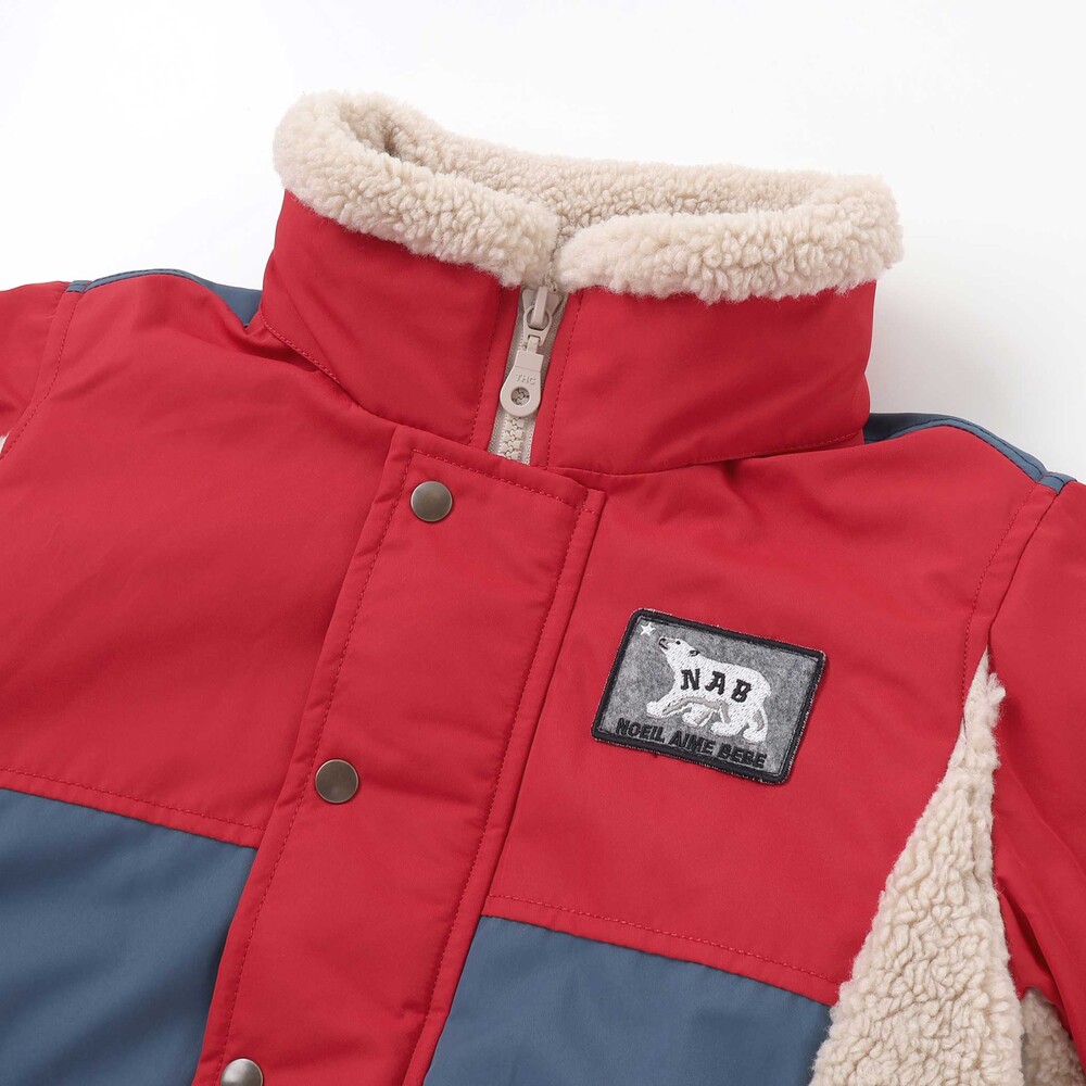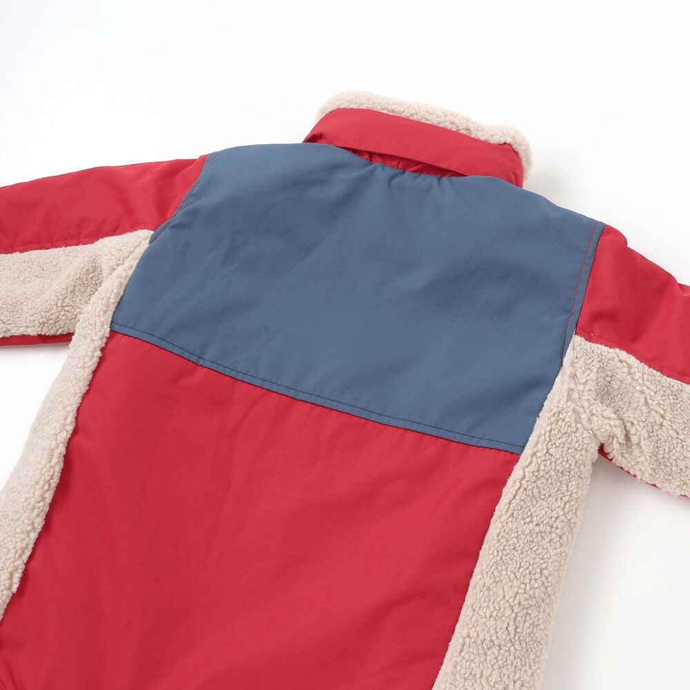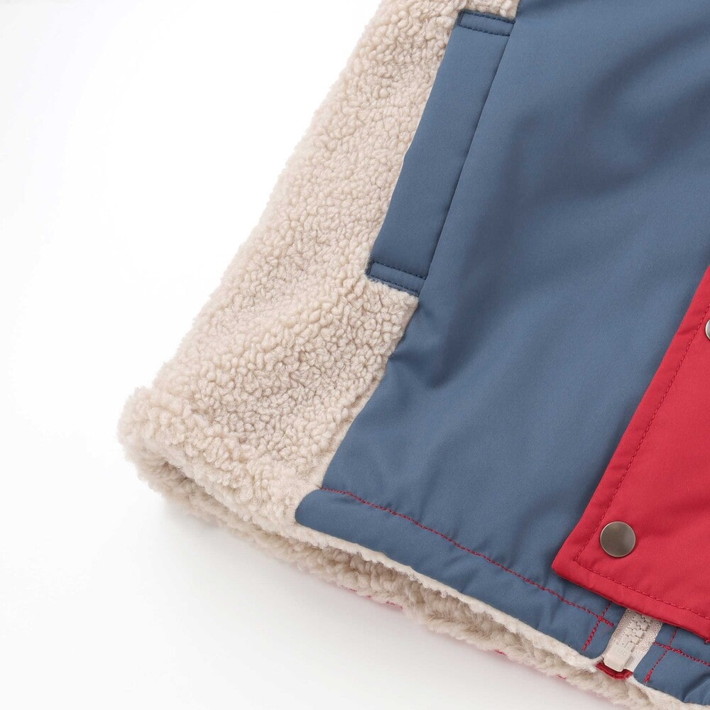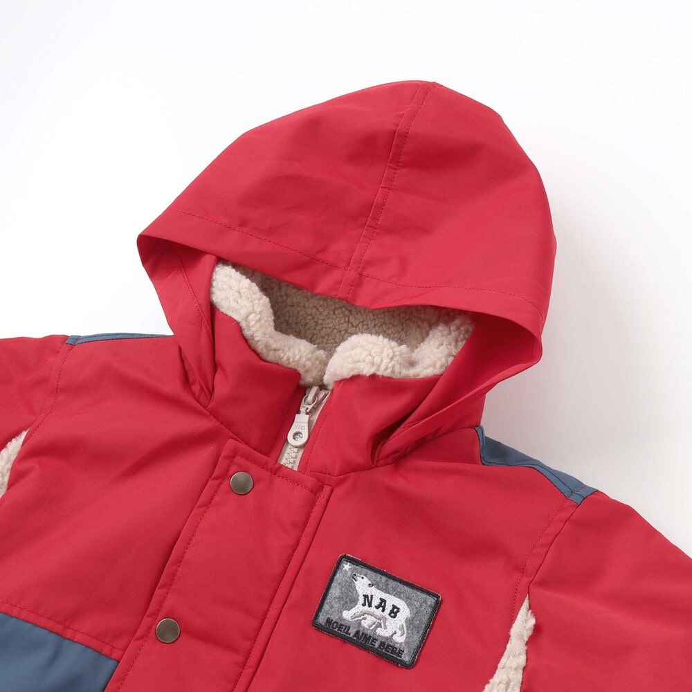 タフタとボアの異素材切り替えが目を惹く男女兼用のマウンテンパーカー。