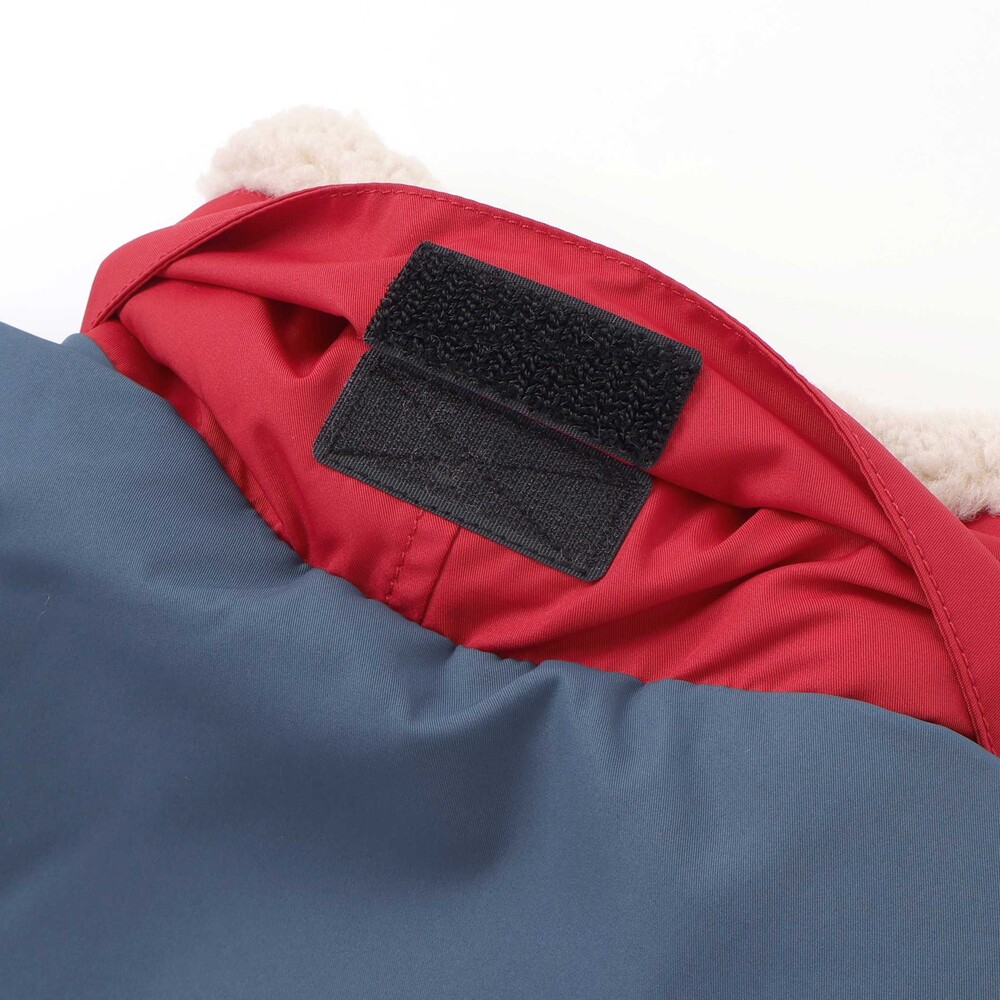 高めの襟と、収納可能なフードにはマジックテープが付いており、風の侵入を防ぎつつ、着脱も簡単です。