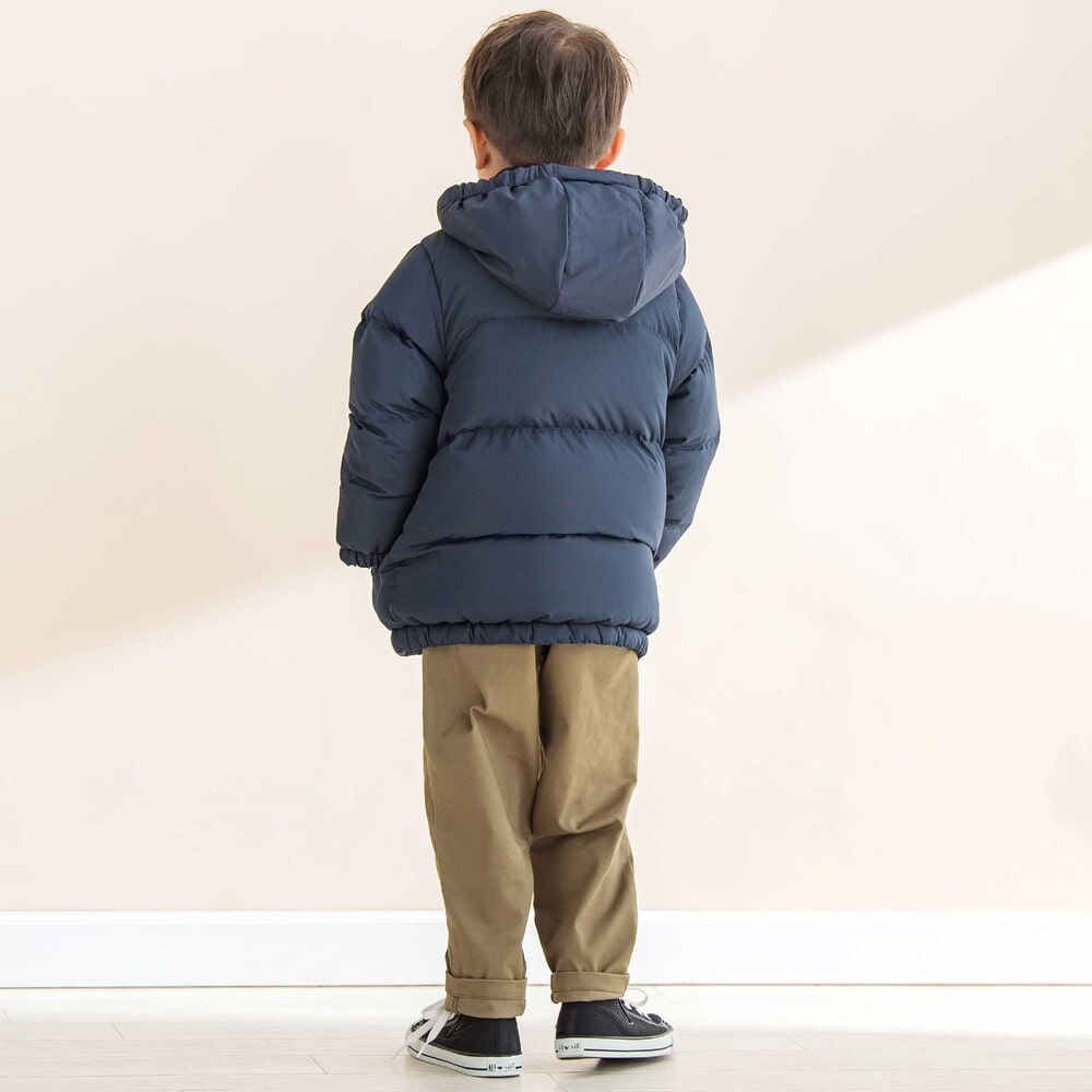 中綿入りでしっかり暖かく、寒い季節にぴったりの男の子用ダウンジャケット。