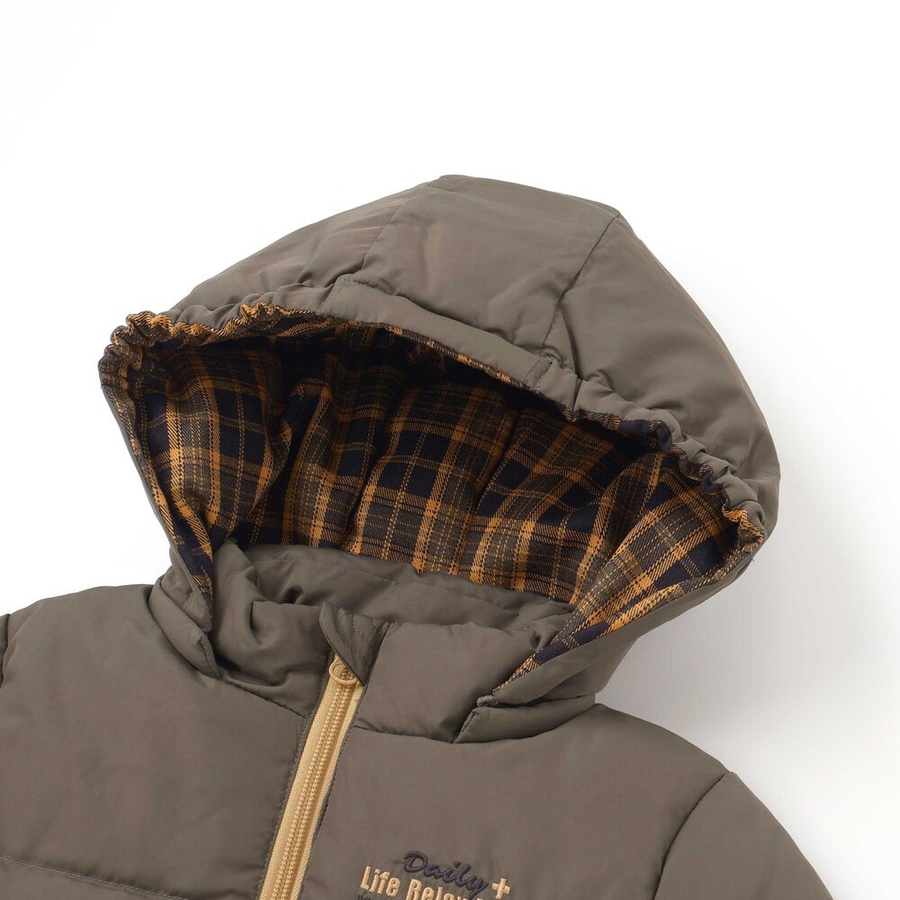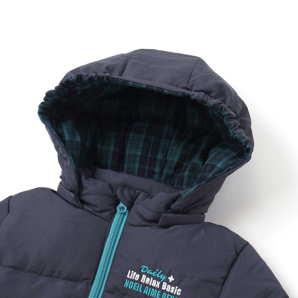 フードはファスナーで取り外し可能で、内側にはおしゃれなビエラチェック柄を使用。