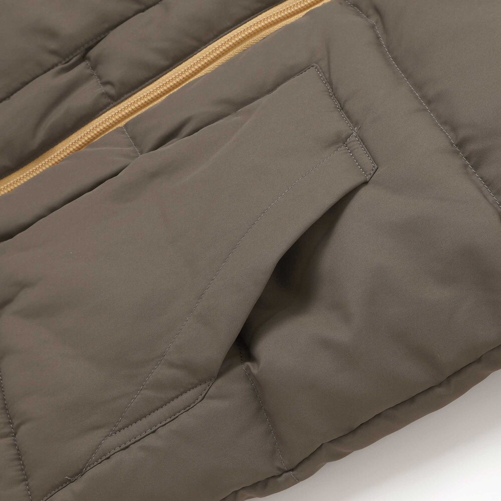軽くて丈夫なタフタに中綿を挟むことで、保温性に優れながらもすっきりとしたシルエットを保てます。