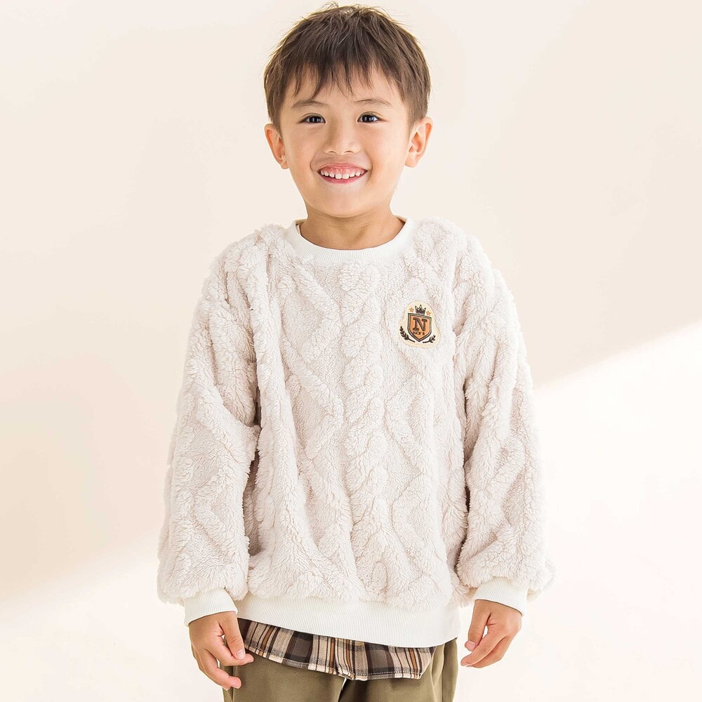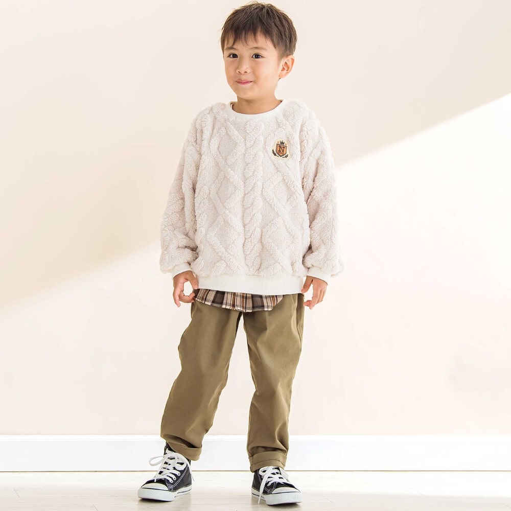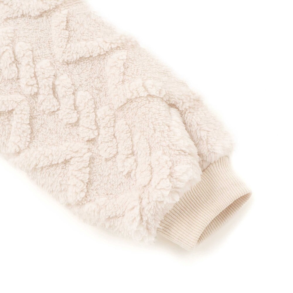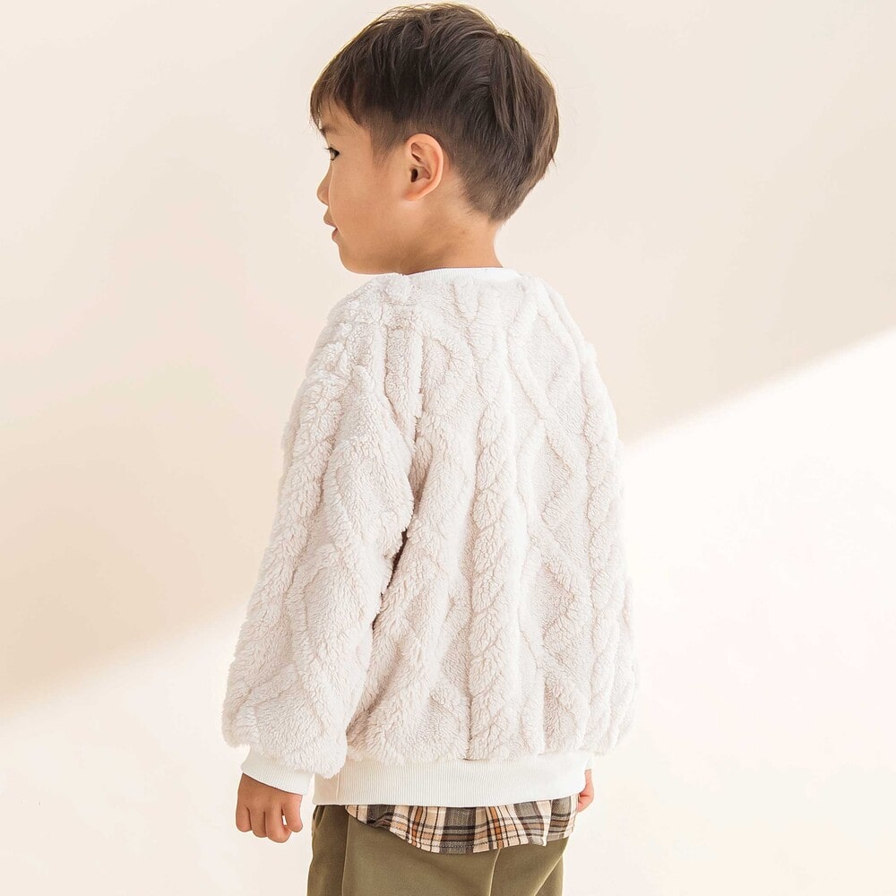立体感のある表情が魅力のケーブルボアフリース素材は、見た目も暖かく、ふんわりとした柔らかな肌触りが特徴です。
