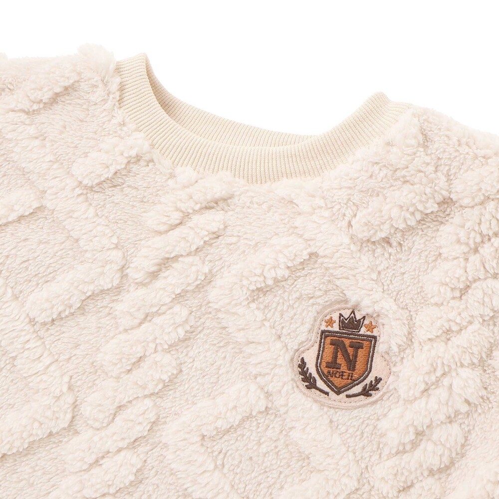 ケーブルボアフリース素材を使用した、あたたかみのあるアイテム。
