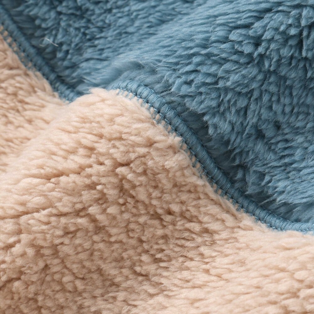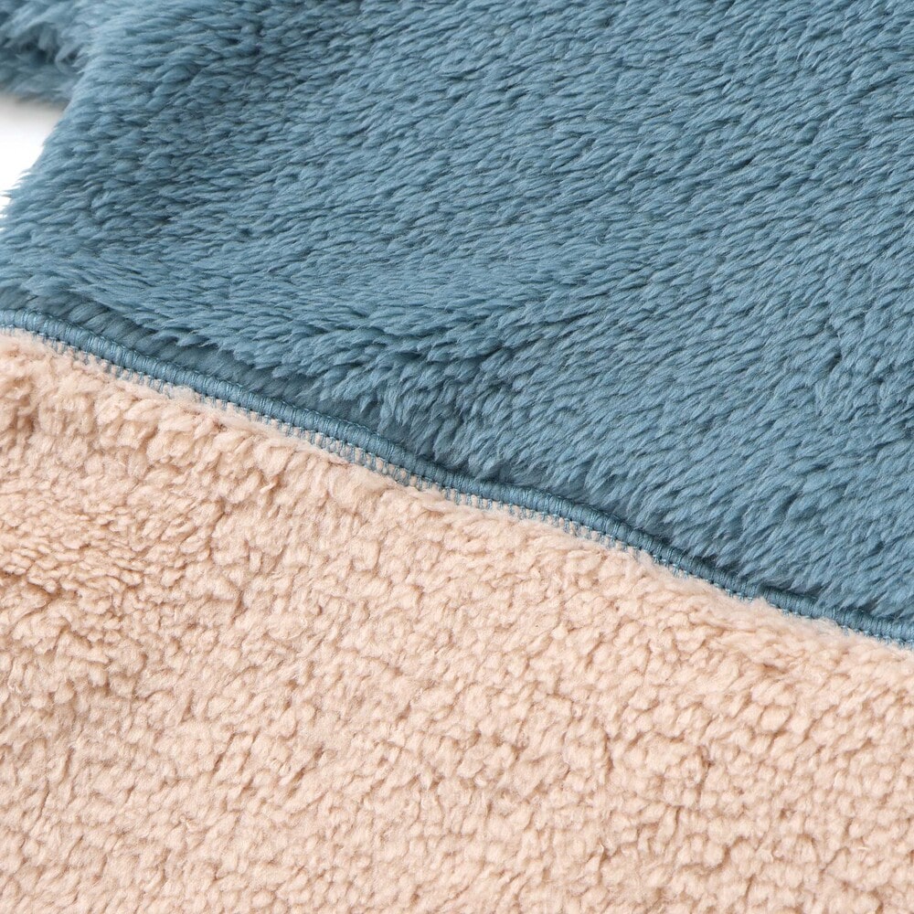 両面ナッピングフリース素材で、ふんわりとした肌触りと高い保温性を両立。