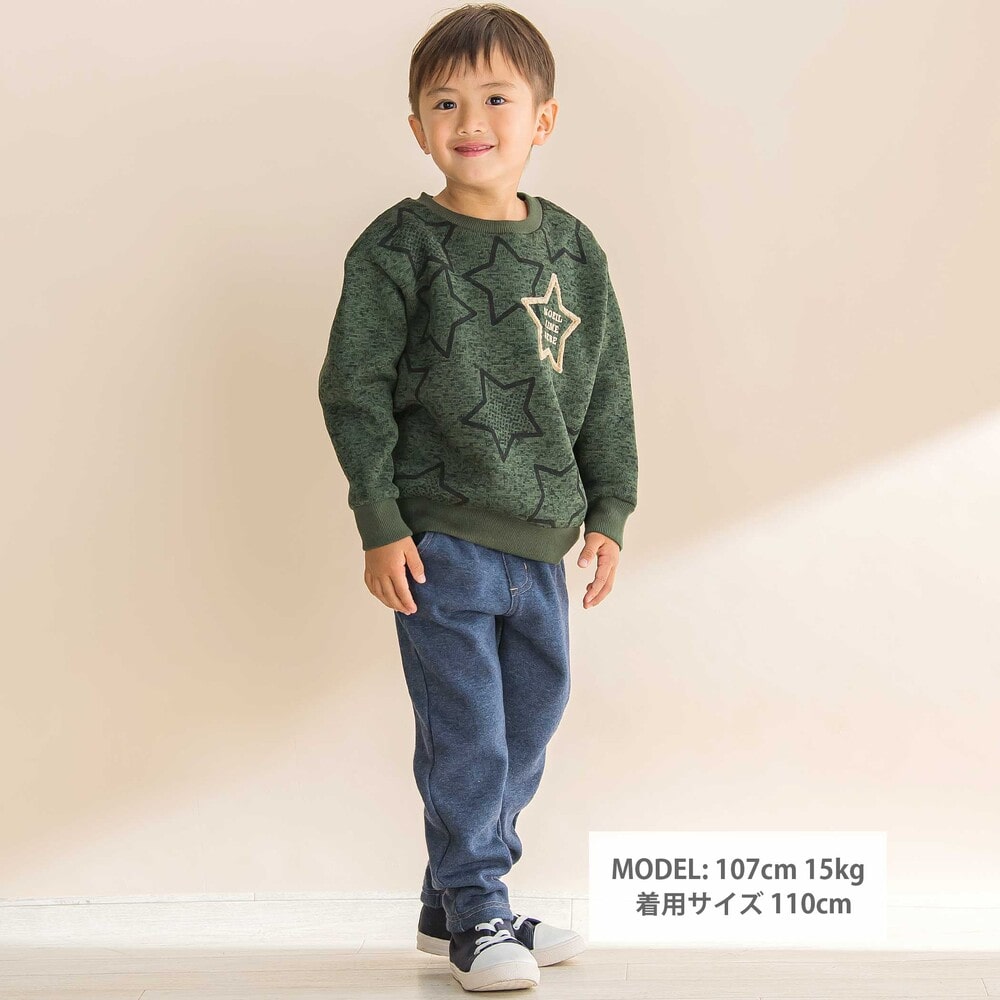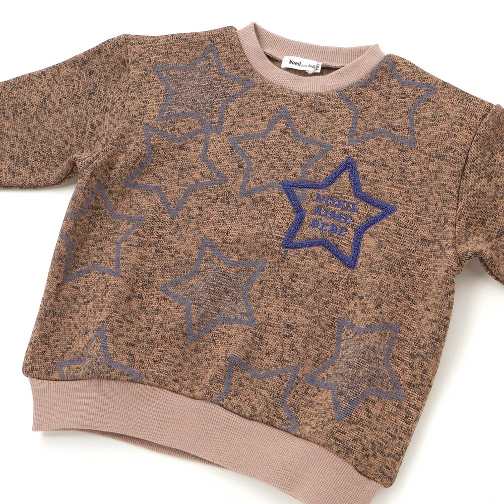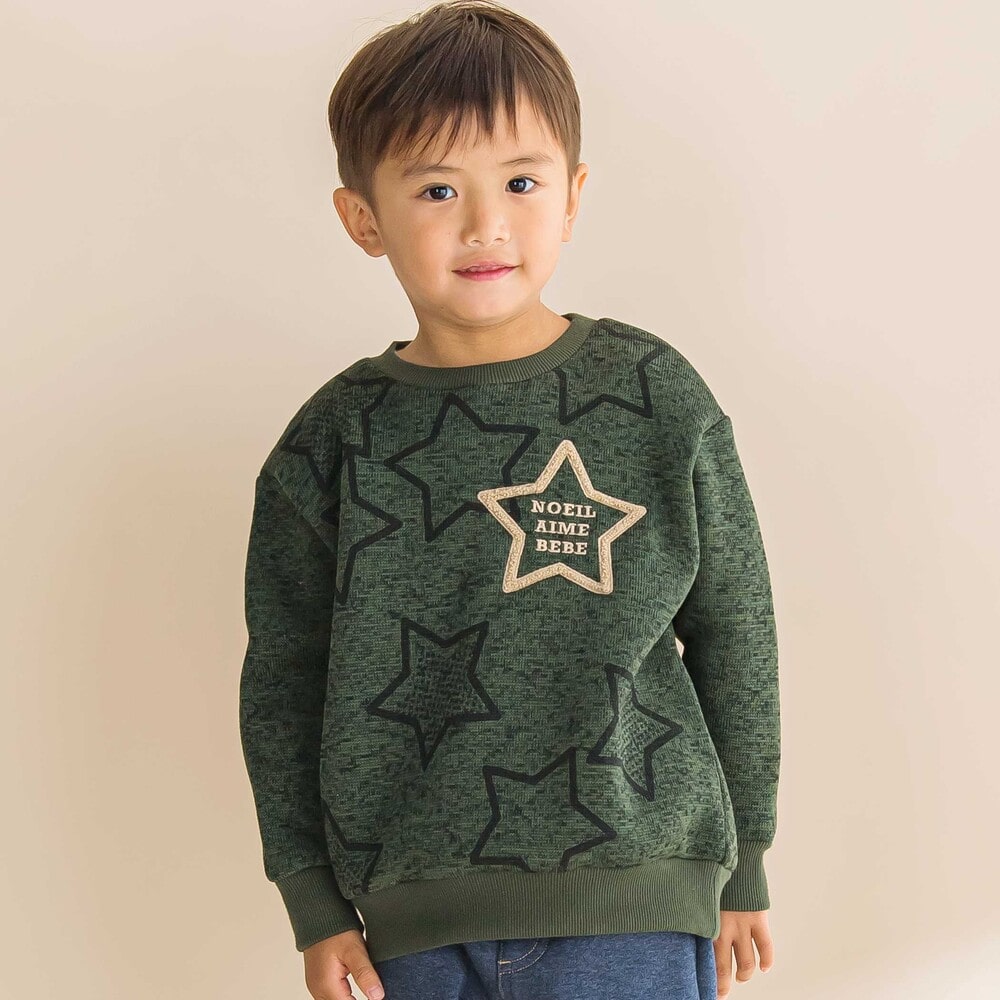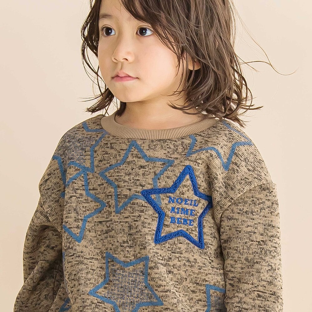 星柄がアクセントの男の子用メランジ裏毛起毛トレーナー。