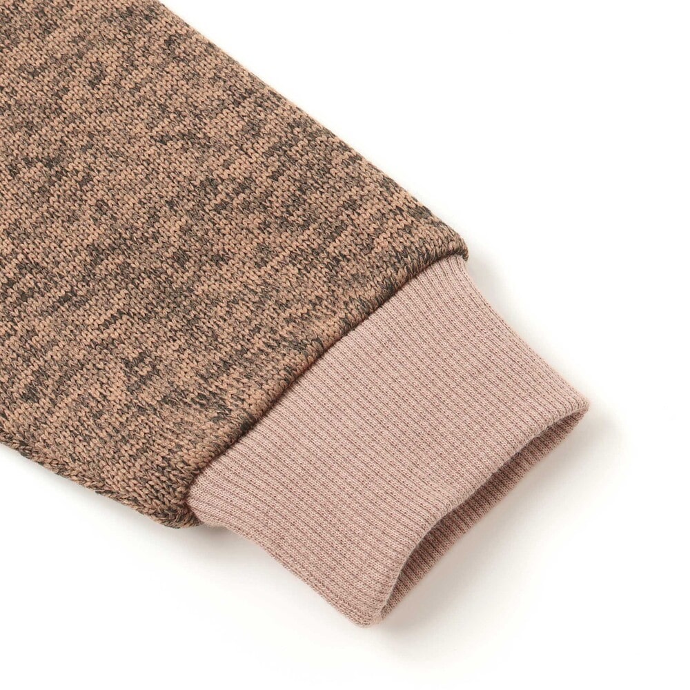 ニットのような風合いのメランジ裏毛起毛素材で、柔らかくあたたかい着心地が魅力です。