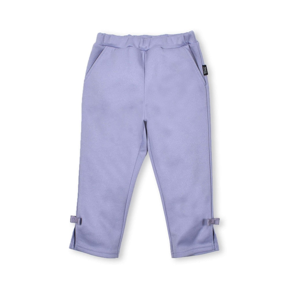 裾に入ったスリットとリボンがアクセントのダブルフェイスの8分丈女の子用パンツ。