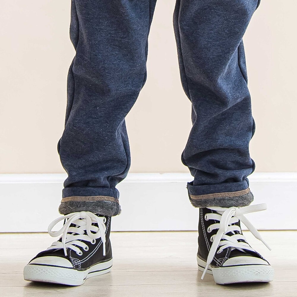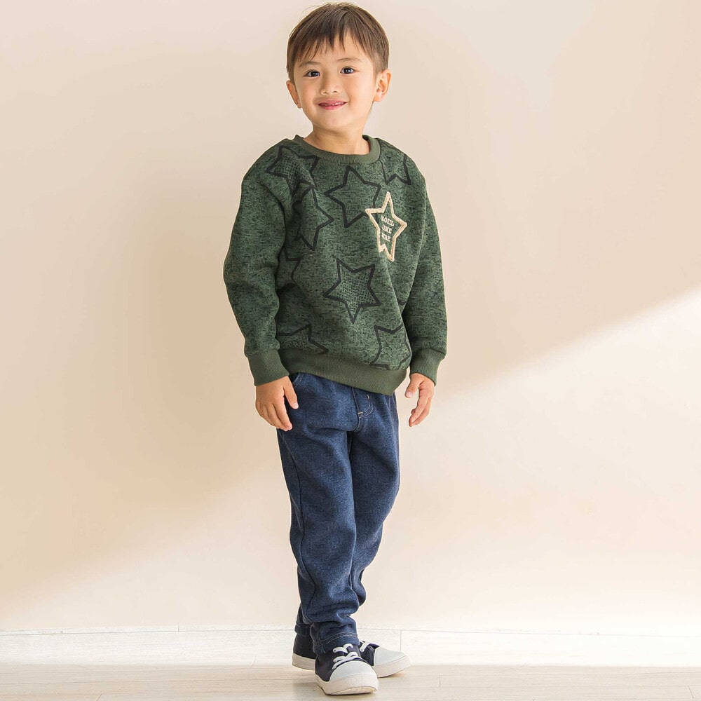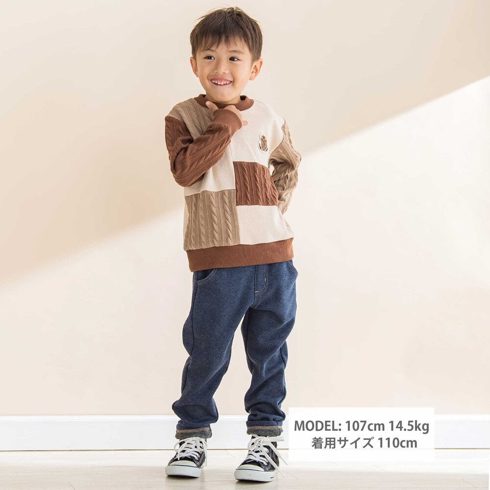 柔らかくてあたたかい、男の子用デニム風裏起毛スリムパンツ。