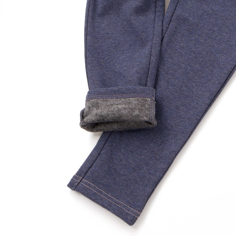 柔らかいデニム風の裏起毛素材で、肌ざわりが良くあたたかいスリムパンツ。