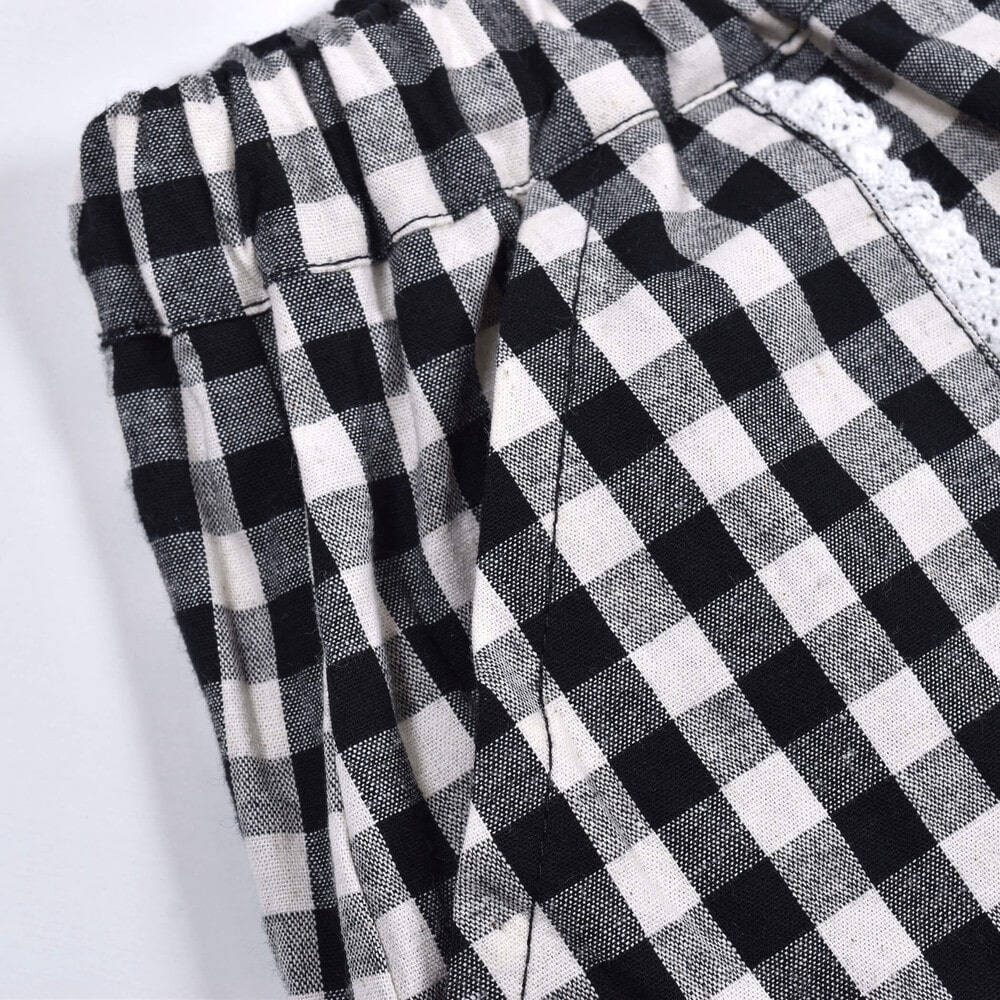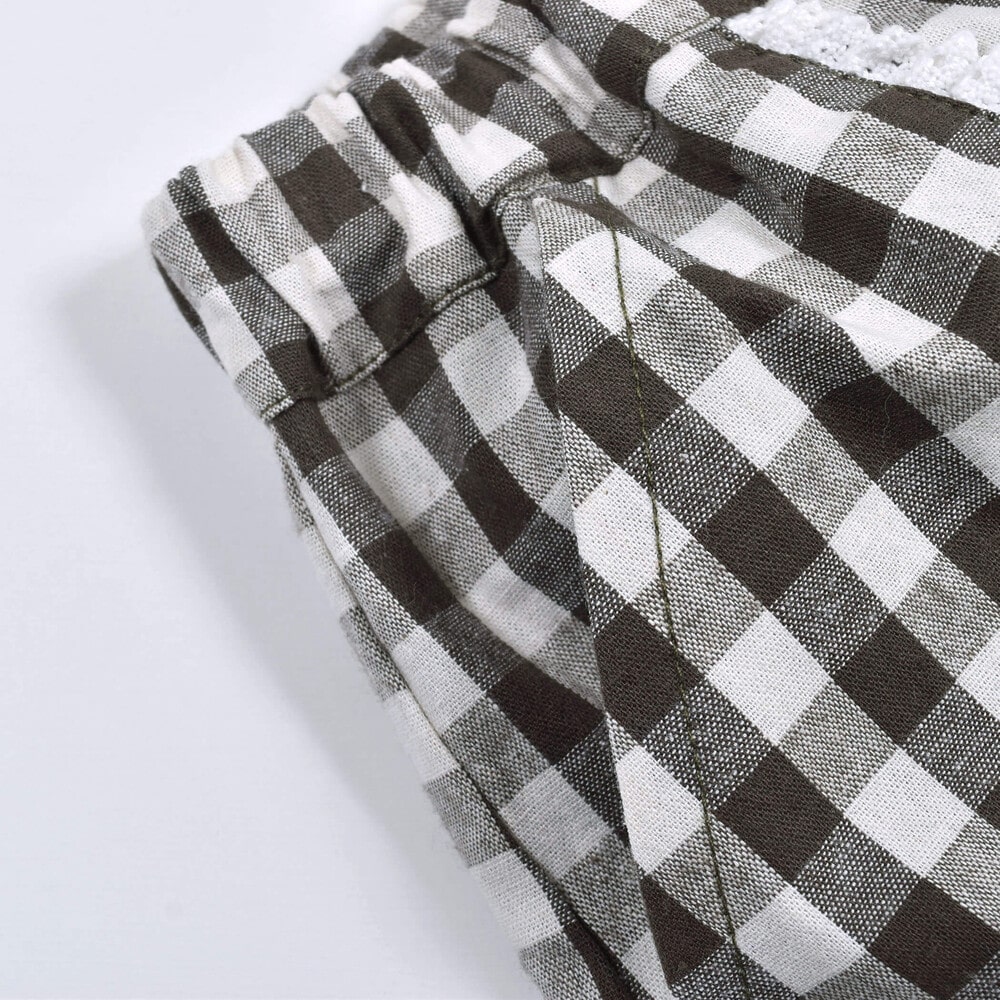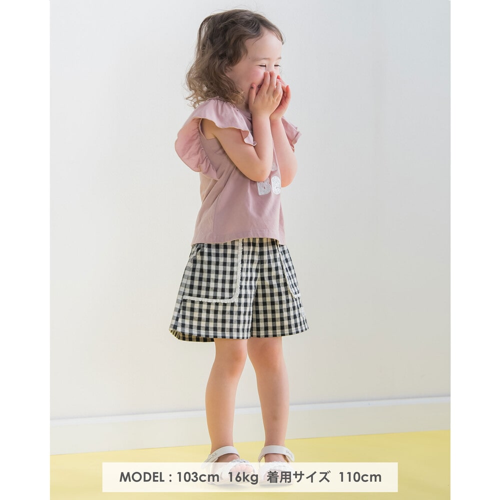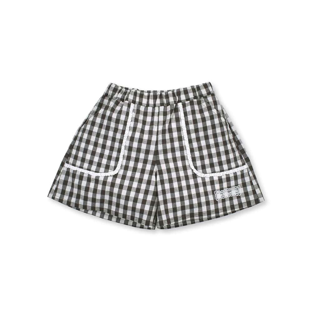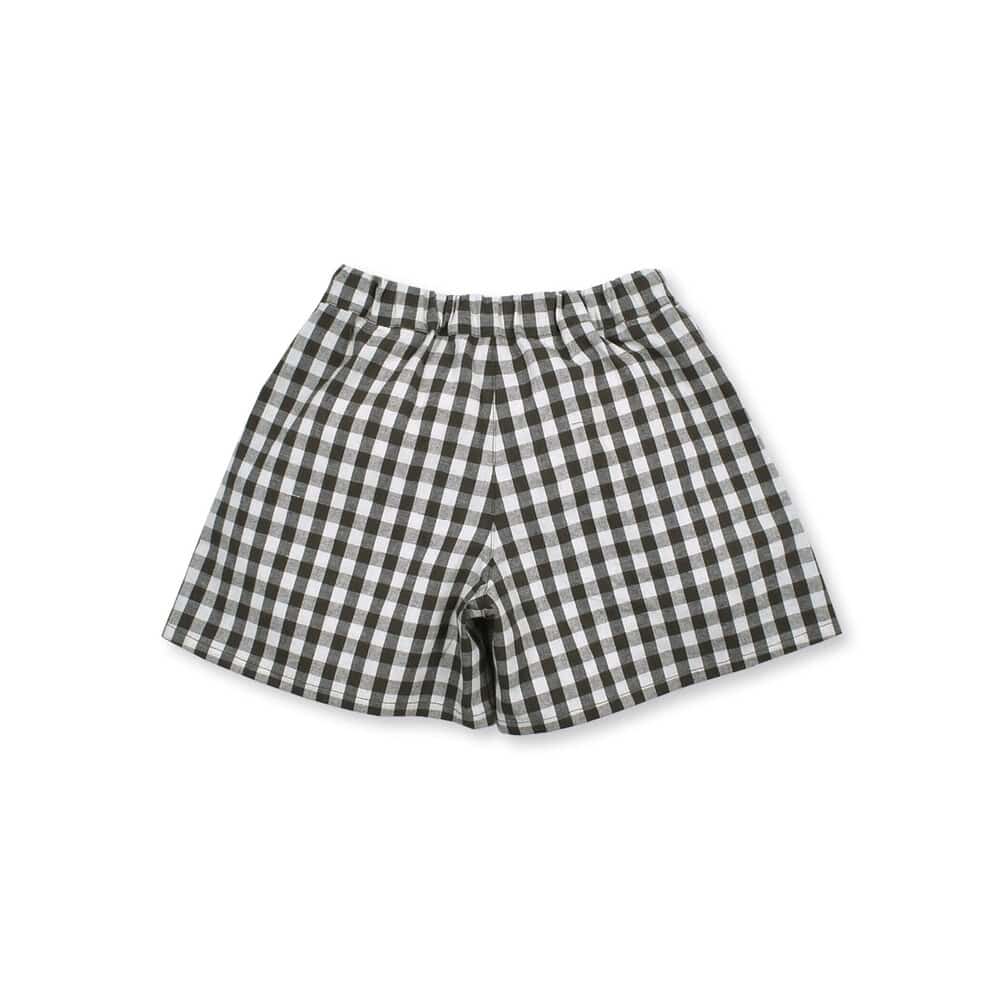 ギンガムチェックのポケット付きショートパンツ。