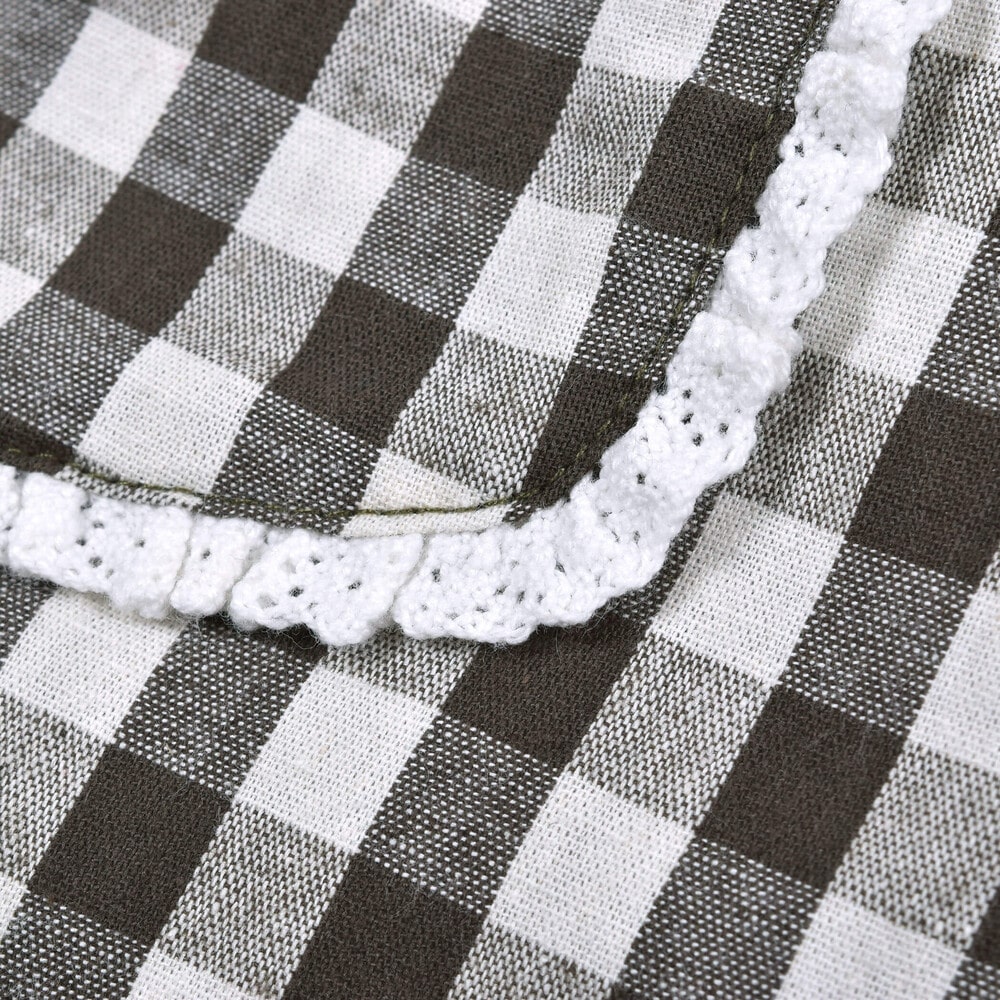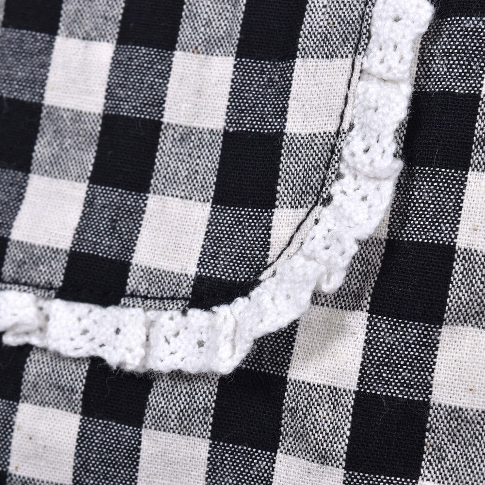 ポケットにあしらったレースやレースのネームタグが女の子らしく可愛いデザインです。